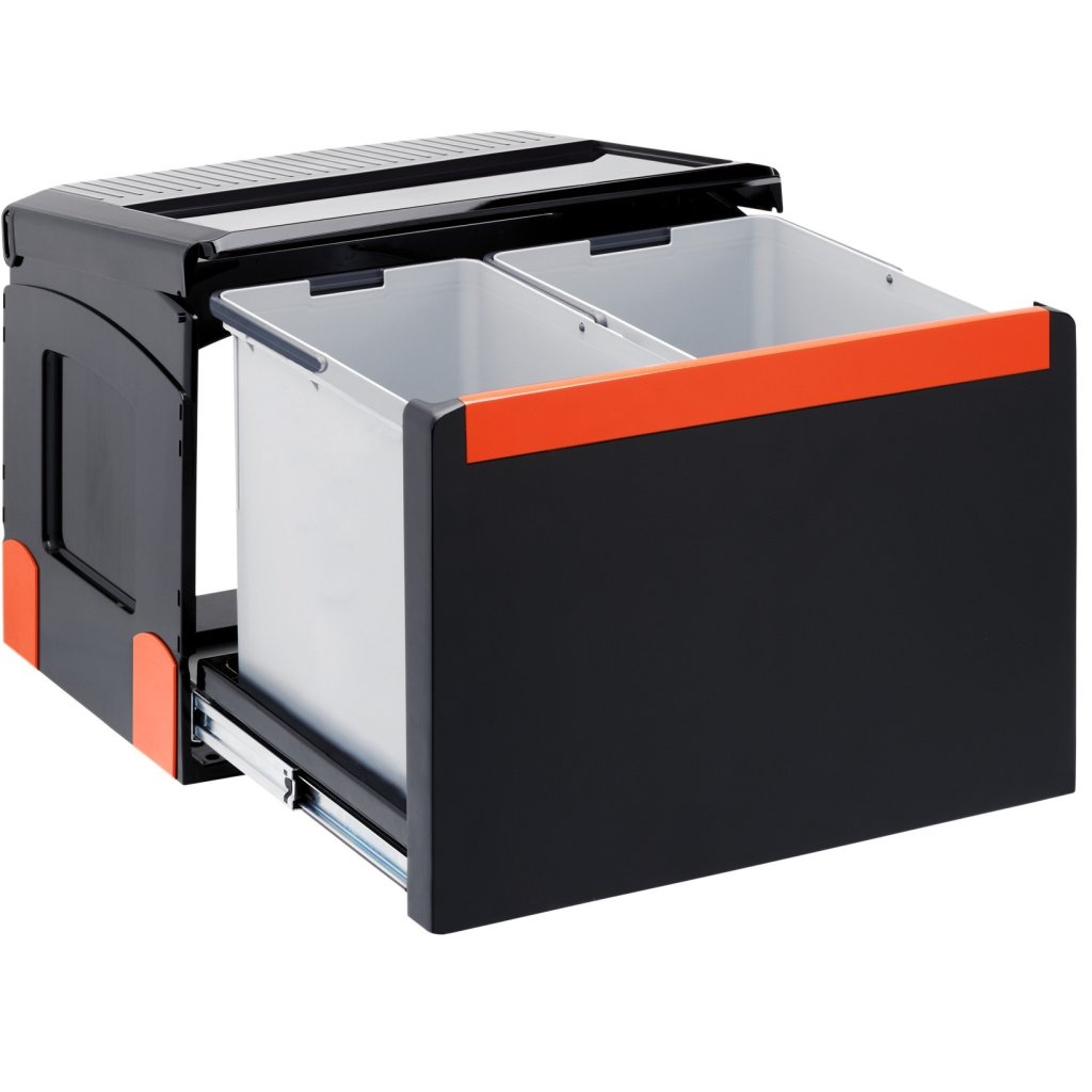 Praktický systém třídění odpadu s ručním výsuvem. Nabízí dva prostorné koše různých velikostí pro pohodlné třídění odpadu v kuchyni.