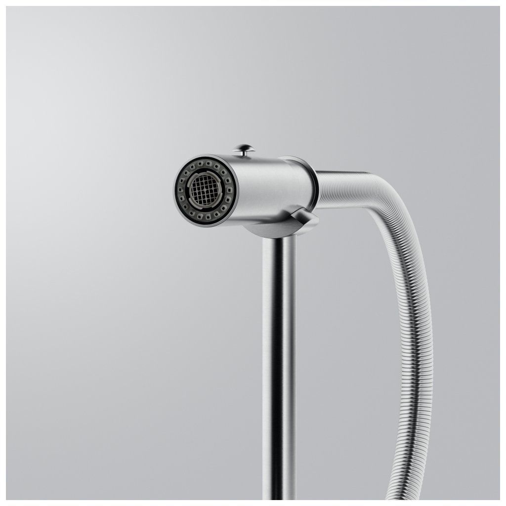 Otočná 360°. S koncovkou na pružině osazenou perlátorem. S regulací Sprcha/Proud. Hadice s kovovou pružinou. Připojení Hadičky 45 cm. Průtok vody 8,1 l/min. (3 bar). Laminární průtok vody. PVD coating. Není vhodná pro montáž do nerezových dřezů.Doplňkové parametry