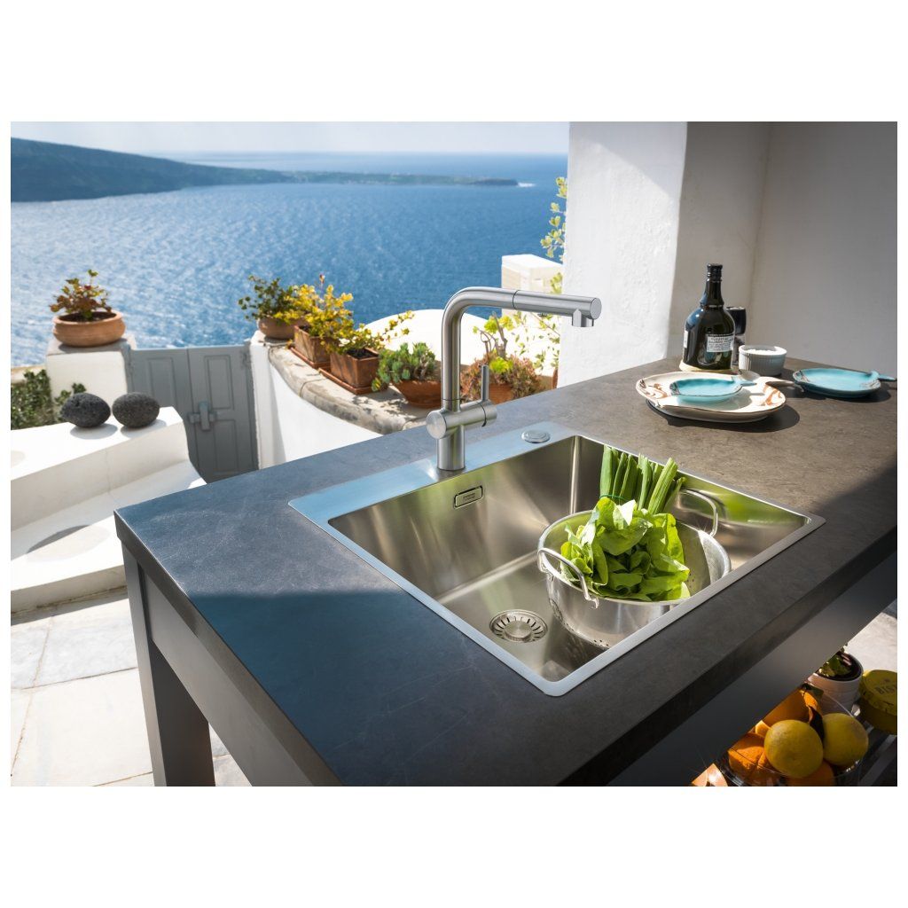 Otočná 180°. S vytahovací koncovkou osazenou perlátorem. S regulací Sprcha/Proud. Opletená sprchová hadice 150 cm. Připojení Hadičky 50 cm. Baterie potřebuje 2 otvory Ø 35 mm na dřezu/v pracovní desce. Průtok vody 7,6 l/min. (3 bar). Laminární průtok vody. Není vhodná pro montáž do nerezových dřezů.Doplňkové parametry