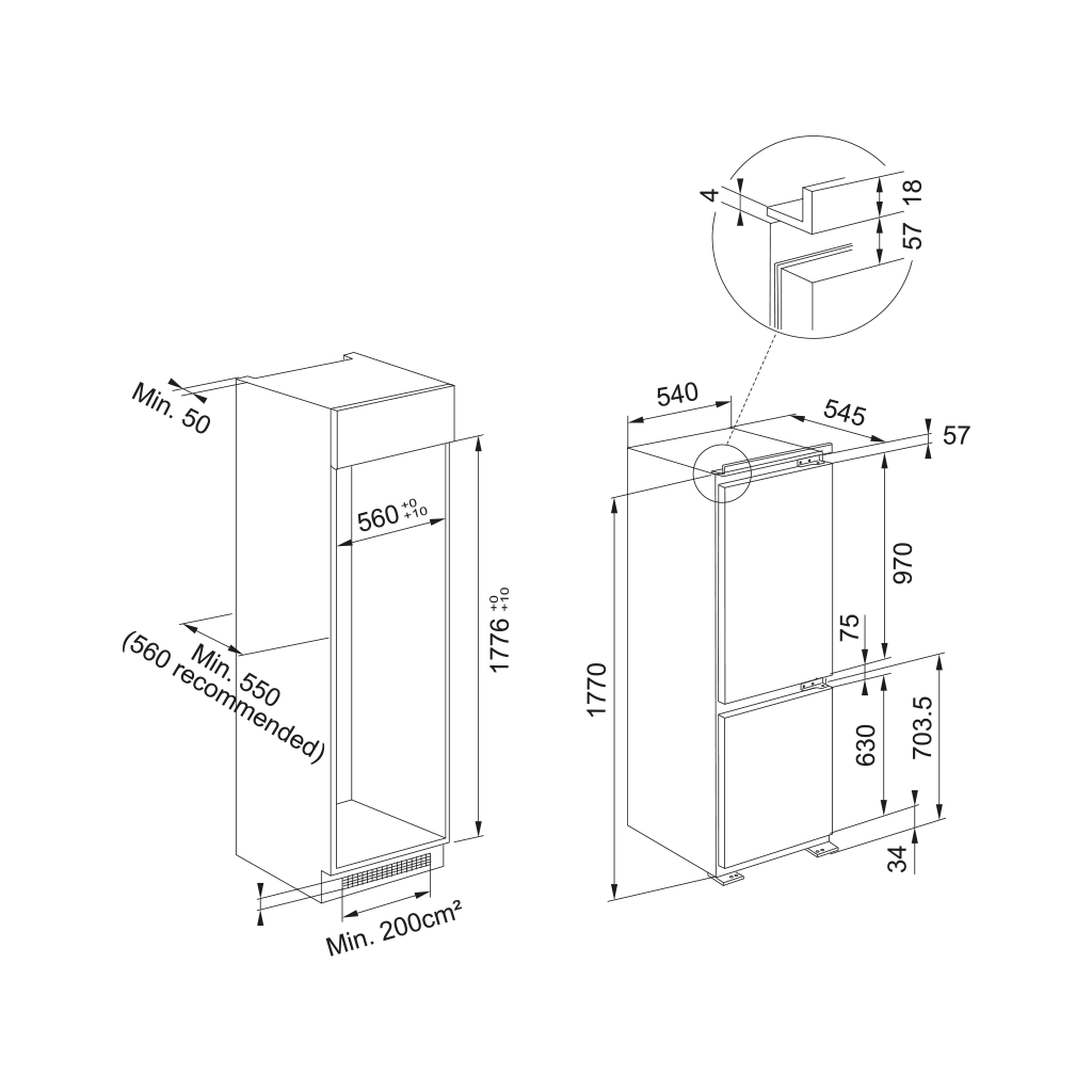 Vestavná kombinovaná chladnička s mrazničkou 178 cm. Novinka 2026.Doplňkové parametry