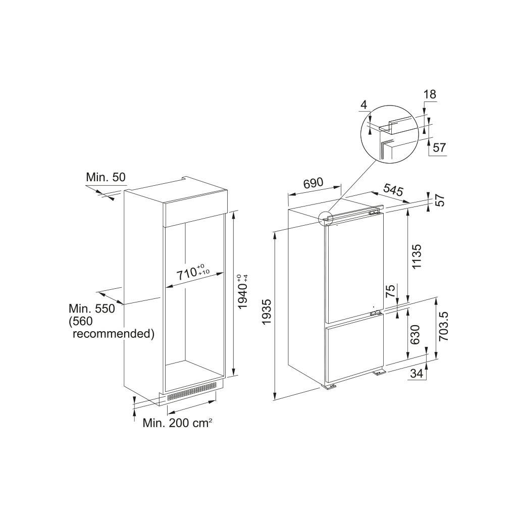Vestavná kombinovaná lednice, Energetická třída: C, Rozměry (VxŠxH): 1935x540x550 mm, Technologie: NoFrost, Max. hlučnost: 32 dB, Roční spotřeba energie: 150 kWh, Změna směru...