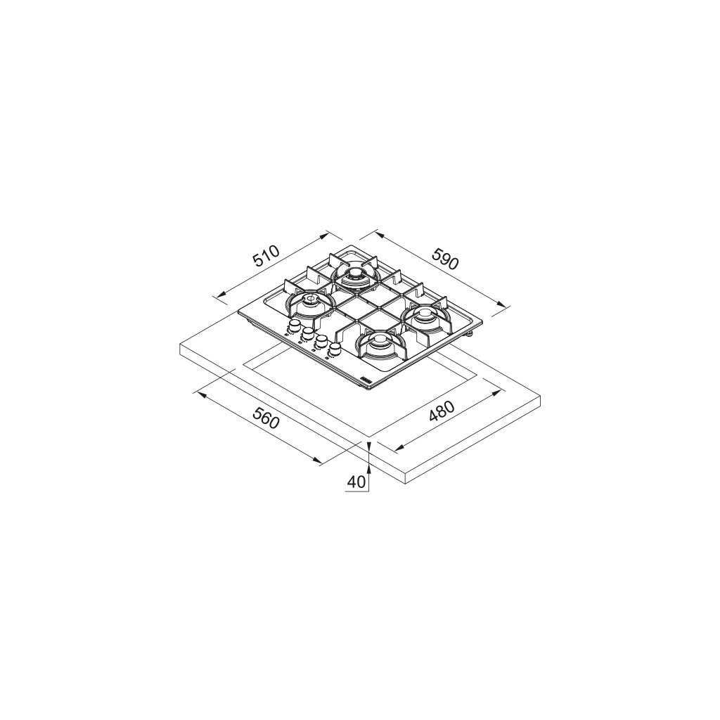 Plynová varná deska, Barva: Bílá, Šířka: 60 cm, Bez rámečku, Prostor pro instalaci (VxŠxH): 41x560x480 mm