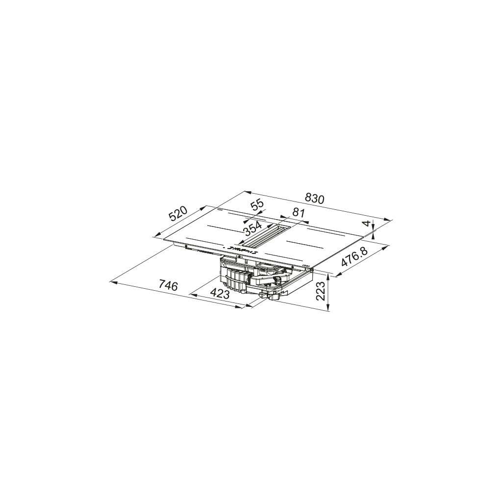 Odsavač par v indukční varné desce Mythos 2Gether Ultra Edge. Provedení matné černé sklo Schott Ceran®. Energetická třída A+. Odsavač par: Montáž do pracovní desky. Šířka 83 cm. Ovládání: Senzorové. Digitální bílý displej + 1 Dotykový ovladač typu Slide. 3 Stupně výkonu, 2× Intenzivní stupeň. Doběh. Automatická aktivace s varnou deskou. Voděodolný motor. Max. výkon 720 m3/h (Norma EN 61591). Součástí odsavače par je vyjímatelný kolektor na tekutinu (V případě náhodné vylití tekutiny do odsavače par). Indukční varná deska: 4 Velké varné zóny. 2× Velká Flexi zóna. Ovládání: Digitální bílý displej + 1 Dotykový ovladače typu Slide. 9 Úrovní ohřevu. Odsavač par i indukce jsou perfektně integrovány. Odsávání je aktivováno automaticky, jakmile je varná deska v provozu. MODEL POUZE PRO RECIRKULACI.