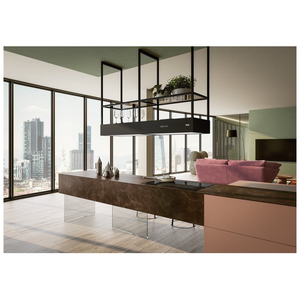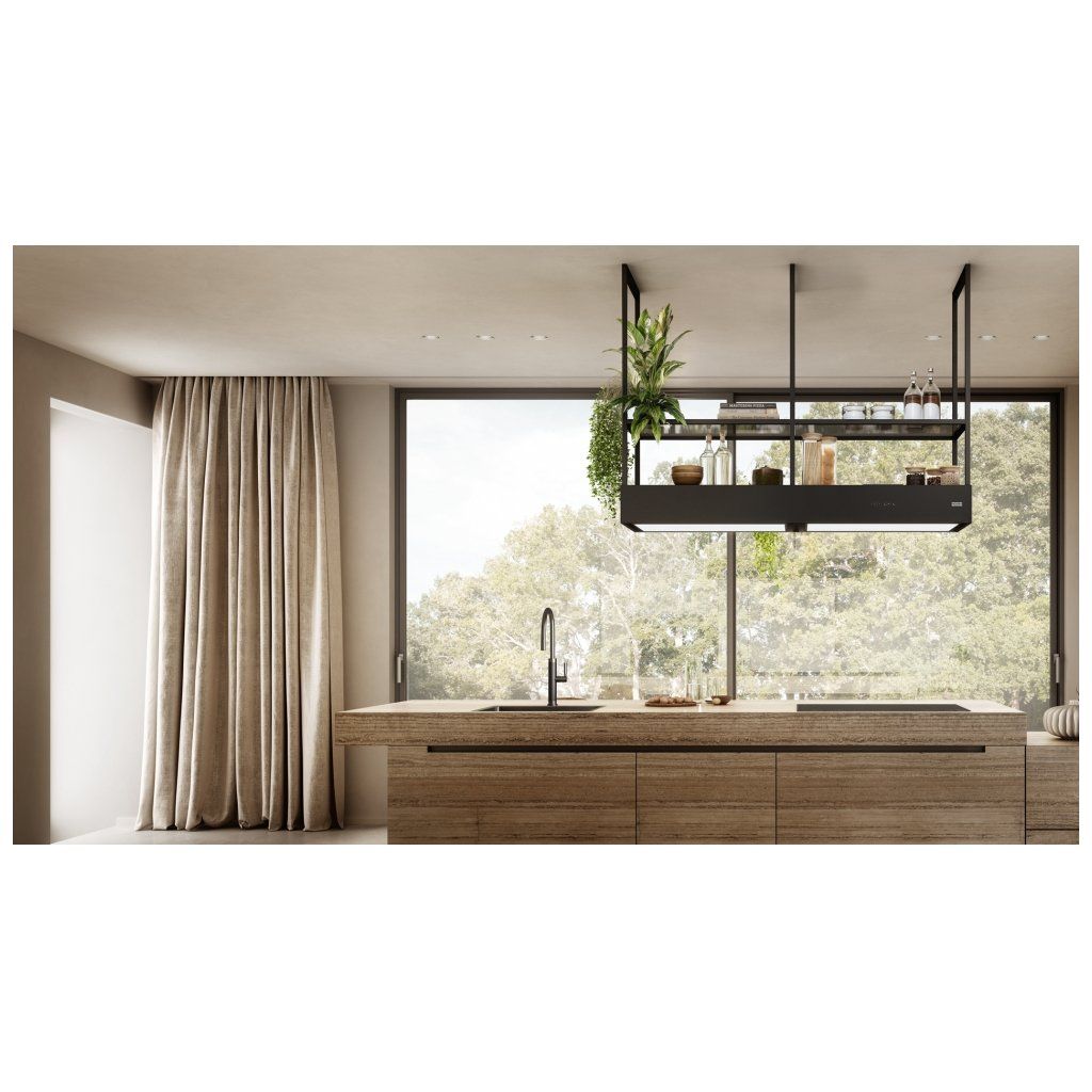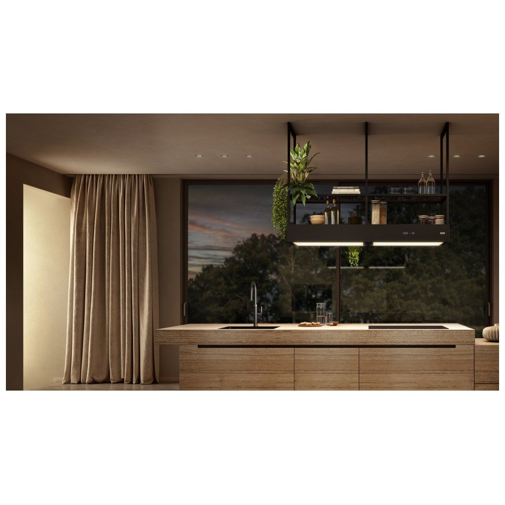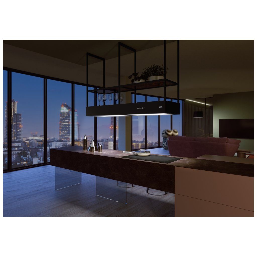 Mythos Evolution je moderní kombinací ostrůvkového odsavače par a elegantního osvětlení pracovního prostoru. Do kuchyně vnáší styl a jedinečnou atmosféru. Dva široké světelné panely (2 × 80 cm) zajišťují optimální osvětlení pracovního prostoru se dvěma úrovněmi jasu a nastavitelnou barvou světla, od studené po teplou. Ovládání odasvače je neuvěřitelně pohodlné díky ovládacímu panelu a dálkovému ovládání. Model je také vybaven funkčními policemi z kouřového skla. Díky technologii K-Link zařízení automaticky komunikuje s varnou deskou a upravuje intenzitu osvětlení podle aktuálních potřeb. Součástí balení je dálkové ovládání a pachový filtr NANOSORB. Provedení matná černá. Senzorové ovládání. Štěrbinové odsávání. 3 Stupně výkonu, Intenzivní stupeň, Doběh. K-LINK Technologie. Funkce trvalého odvětrávání. Ukazatel nasycení filtru.Doplňkové parametry