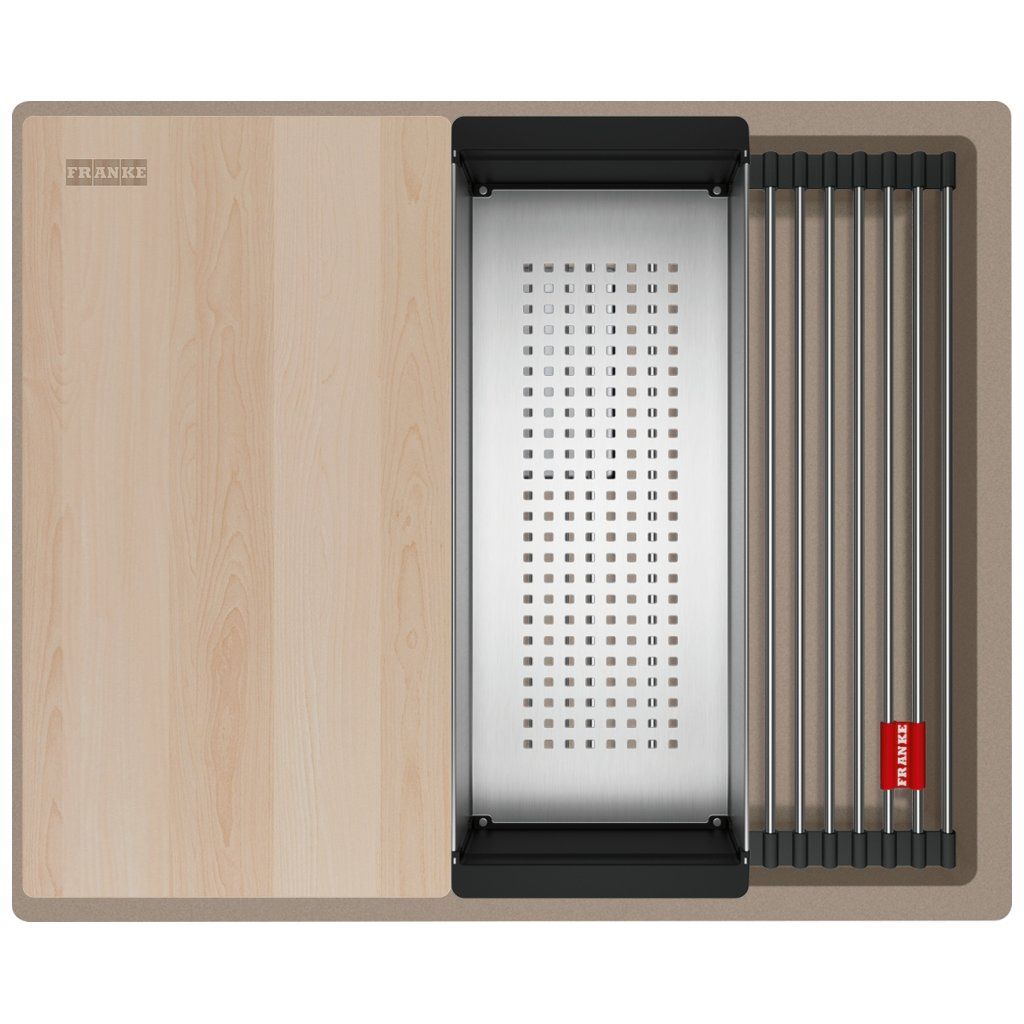 Fragranitový dřez Kubus 2. Cena zahrnuje: Sítkový ventil 3 1/2" s přepadem a nerezovou krytkou ventilu. Sifon pro úsporu místa 6/4 “ s odbočkou na myčku nádobí. V ceně dřezu doplňky: miska, přípravná deska a rolovací rošt.Doplňkové parametry