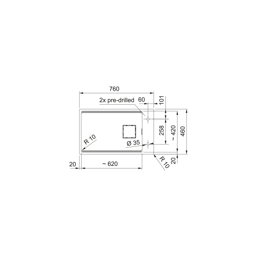 Fragranitový dřez Kubus 2. Cena zahrnuje: Easy Click sítkový ventil 3 1/2“ s přepadem a nerezovou krytkou ventilu. Dřez je bez sifonu. 2 Místa pro vyvrtání otvoru. V ceně dřezu doplňky: miska, přípravná deska a rolovací rošt.Doplňkové parametry