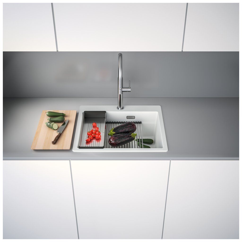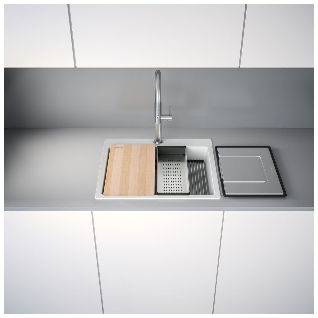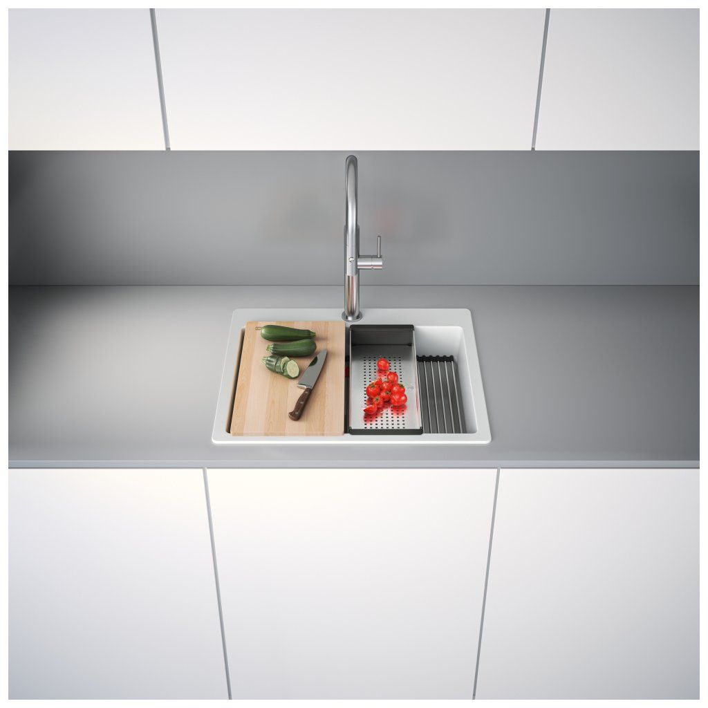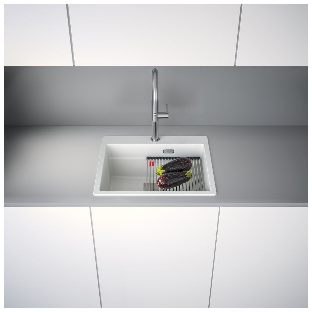 Fragranitový dřez Kubus Pro. Cena zahrnuje: Sítkový ventil 3 1/2“ s přepadem a nerezovou krytkou ventilu. Sifon pro úsporu místa 6/4 “ s odbočkou na myčku nádobí. 3 Místa pro vyvrtání otvoru. Možnost umístit dávkovač saponátu. V ceně dřezu doplňky: miska, přípravná deska a rolovací rošt.Doplňkové parametry
