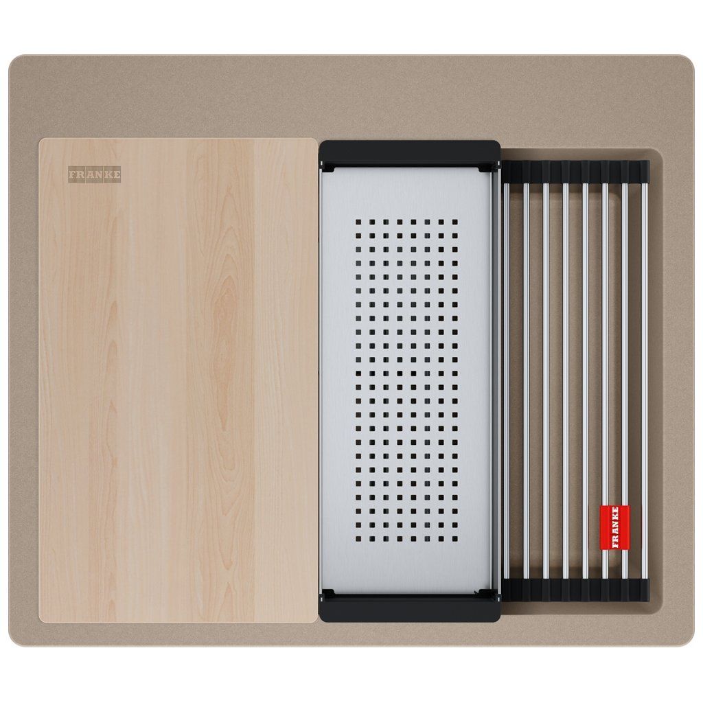 Fragranitový dřez Kubus Pro. Cena zahrnuje: Sítkový ventil 3 1/2“ s přepadem a nerezovou krytkou ventilu. Sifon pro úsporu místa 6/4 “ s odbočkou na myčku nádobí. 3 Místa pro vyvrtání otvoru. Možnost umístit dávkovač saponátu. V ceně dřezu doplňky: miska, přípravná deska a rolovací rošt.Doplňkové parametry