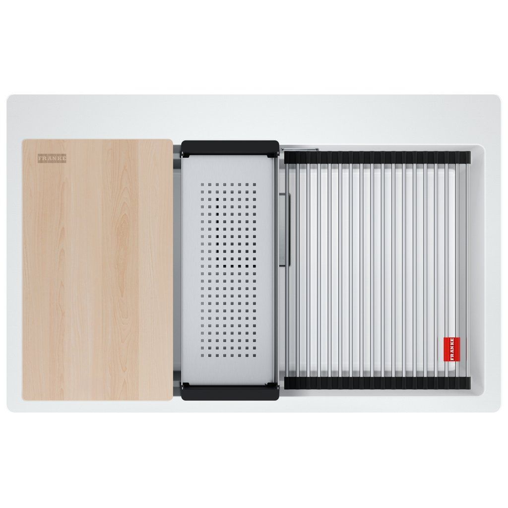Fragranitový dřez Kubus Pro. Cena zahrnuje: Sítkový ventil 3 1/2“ s přepadem a nerezovou krytkou ventilu. Sifon pro úsporu místa 6/4 “ s odbočkou na myčku nádobí. 3 Místa pro vyvrtání otvoru. Možnost umístit dávkovač saponátu. V ceně dřezu doplňky: miska, přípravná deska a rolovací rošt.Doplňkové parametry