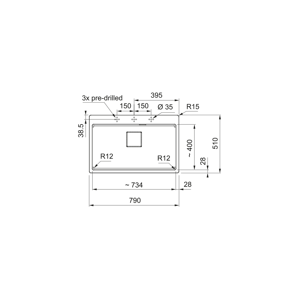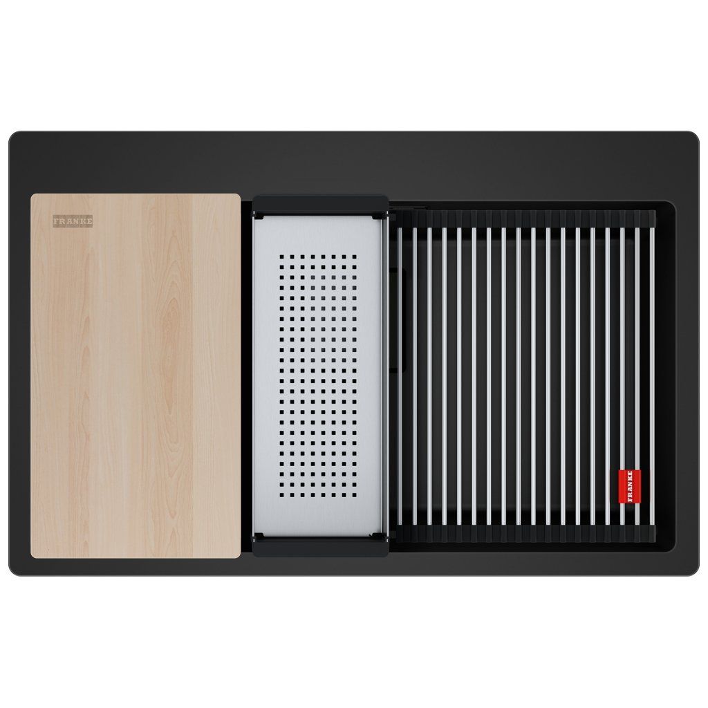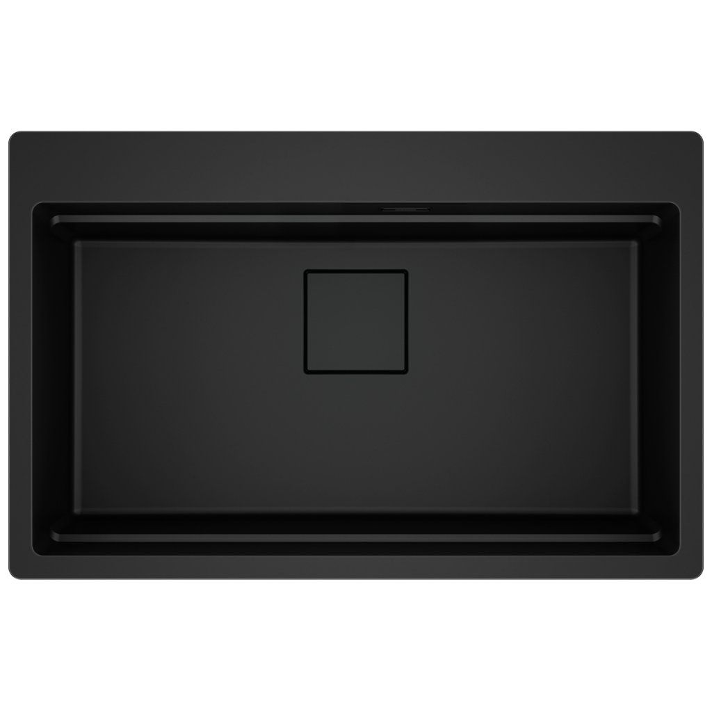 Fragranitový dřez Kubus Pro. Cena zahrnuje: Sítkový ventil 3 1/2“ s přepadem a nerezovou krytkou ventilu. Sifon pro úsporu místa 6/4 “ s odbočkou na myčku nádobí. 3 Místa pro vyvrtání otvoru. Možnost umístit dávkovač saponátu. V ceně dřezu doplňky: miska, přípravná deska a rolovací rošt. Skrytý přepad, sítkový ventil a krytka ventilu jsou v matném černém provedení.Doplňkové parametry