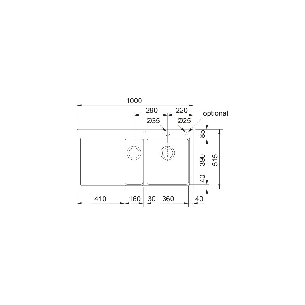 - Celkové rozměry 1000 x 515 mm