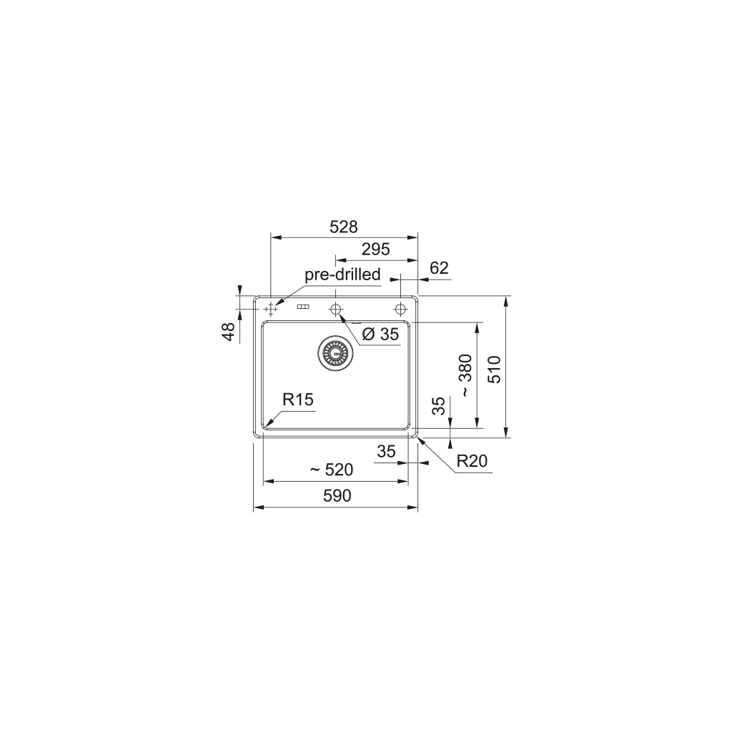 Keramický dřez Mythos. Cena zahrnuje: Easy Click sítkový ventil 3 1/2“ s přepadem. Otvor pro baterii ∅ 35 mm a pro Easy Click knoflík ∅ 35 mm. Dřez je bez sifonu. V důsledku výrobního procesu mají rozměry keramických dřezů větší toleranci a mohou se lišit od rozměrů uvedených v technických výkresech +/- 1%.Doplňkové parametry