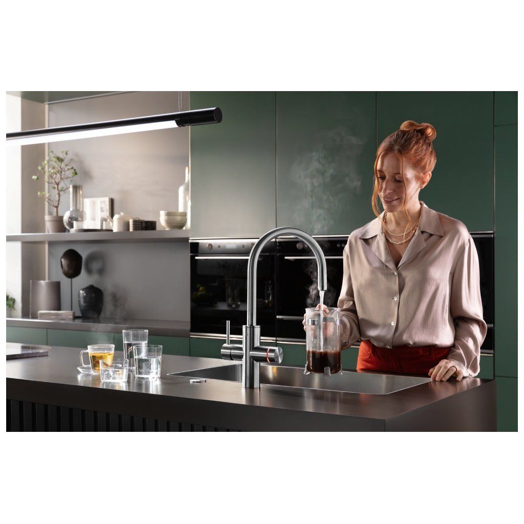 NA OBJEDNÁVKU. Baterie Mythos Water Hub All in One je inovativní řešení „vše v jednom", které umožňuje výběr vámi preferované vody. Můžete si kdykoli vybrat mezi horkou a studenou vodou. Nabízí také možnost vody filtrované, která může být chlazená, vroucí nebo perlivá. Bojler, chladicí jednotka, kartuše CO2 a filtr jsou umístěny v jednom kompaktním boxu, což umožňuje snadnou instalaci pod dřez. Elektronické ovládání s LED indikací a mobilní aplikace usnadňují obsluhu a sledování spotřeby. Filtr Pro M Connect omezuje tvorbu vodního kamene, odstraňuje škodlivé kontaminanty, zachovává zdravé minerály, jako je vápník a hořčík. Díky integrované technologii RFID (Dálková radiofrekvenční identifikace) zařízení automaticky zašle uživateli upozornění, když je třeba filtr vyměnit.Doplňkové parametry