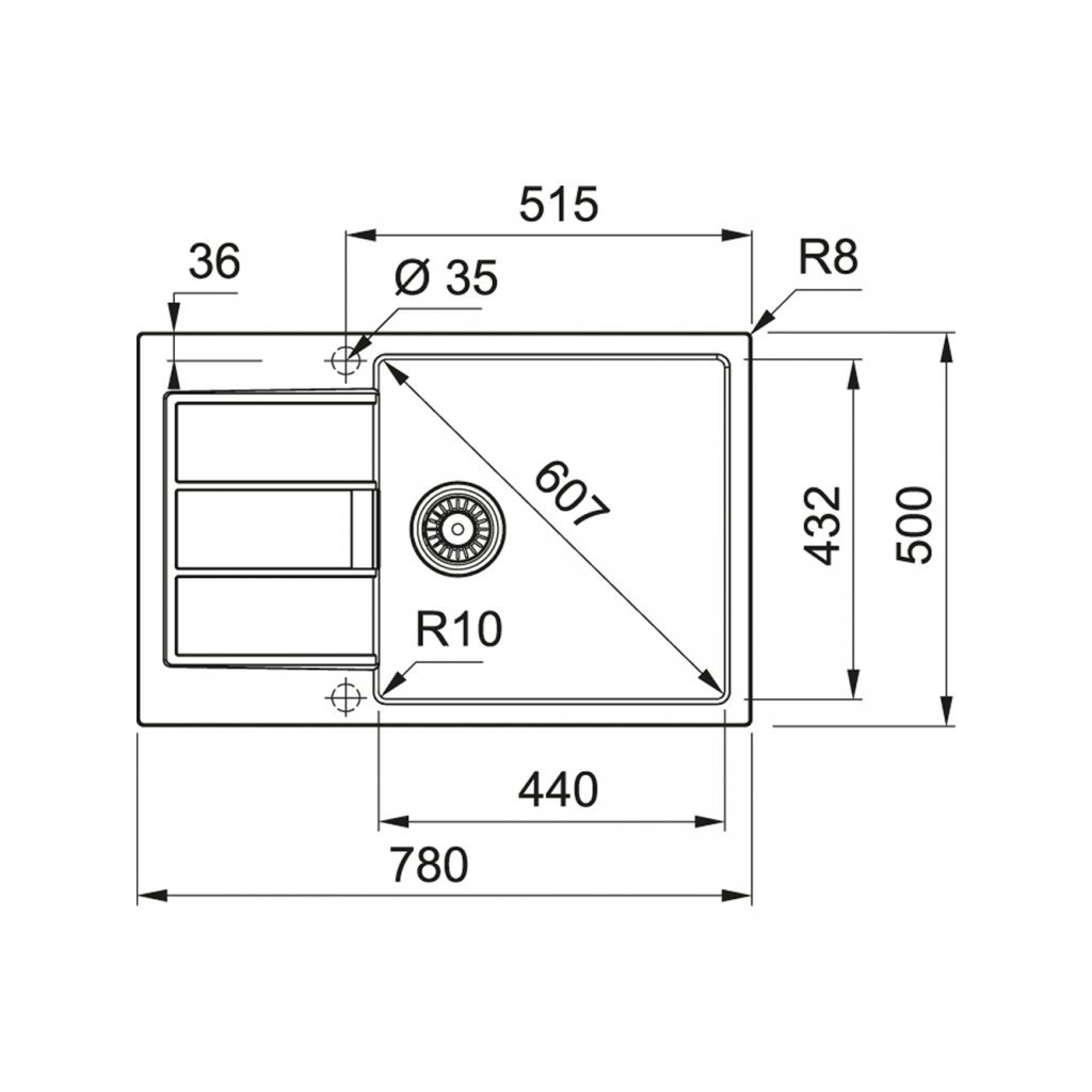 - Rozměry dřezu 440 × 432 × 200 mm