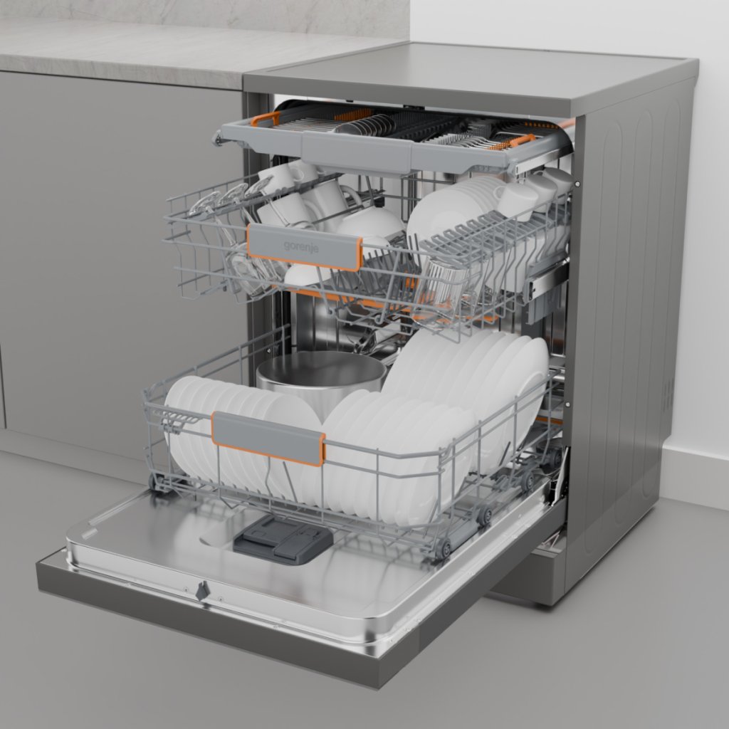 Myčky Gorenje UltraClean nabízejí dostatečný prostor pro každou příležitost. Tři koše umožňují umýt až 16 sad nádobí najednou. Zcela flexibilní uspořádání umožňuje různé možnosti použití a jednoduše si ho přizpůsobíte. SE TO dokonale umyje, i když pozvete na návštěvu přátele.