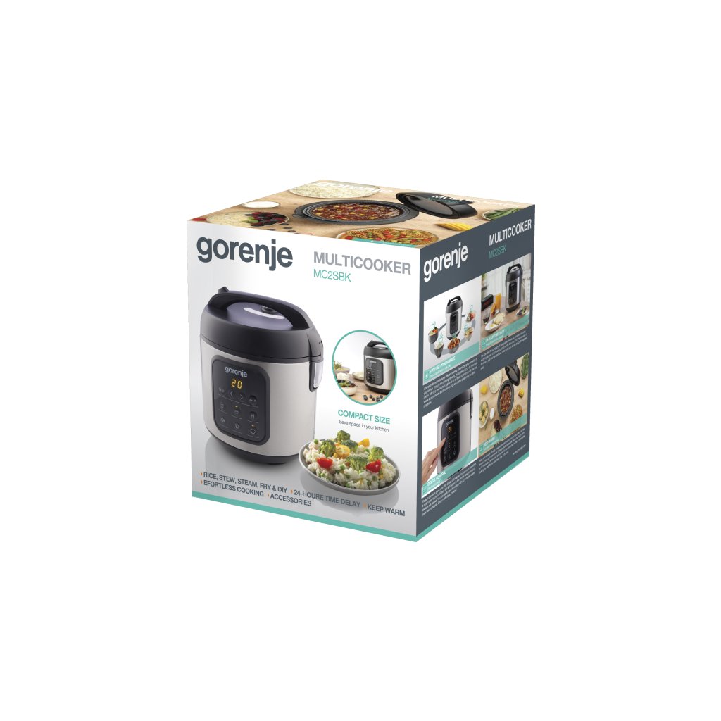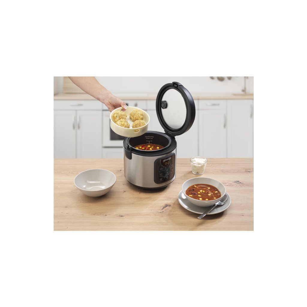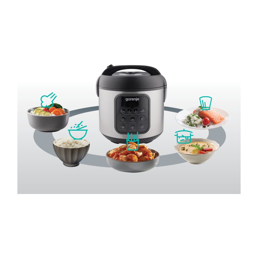 Gorenje multicooker features different cooking options, bringing versatility in your kitchen. Enjoy in rice cooking, stewing, frying, steaming or do it yourself option. With only one kitchen appliance for all these options you will use less space in your kitchen and be able to cook any dish in preserving its useful properties.