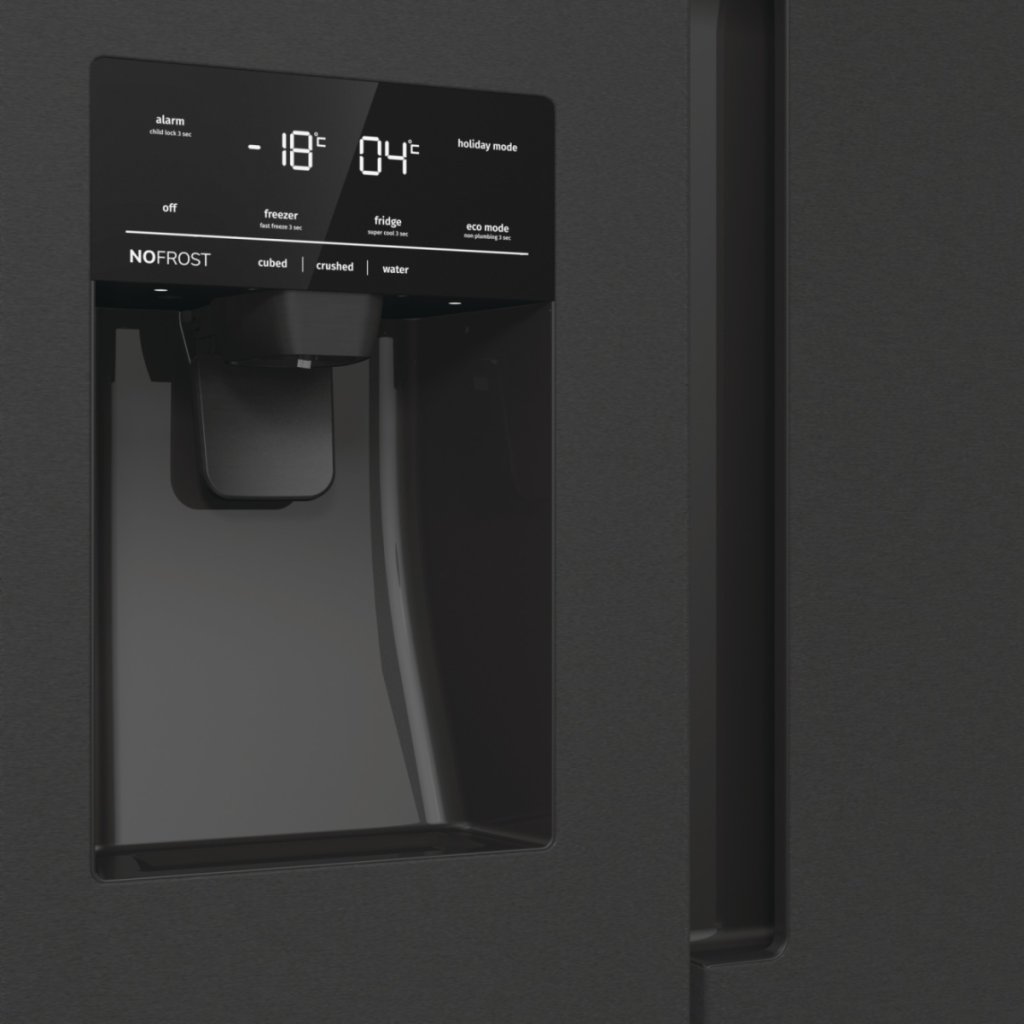 Dotykově ovládaný výrobník ledu s dávkovačem vody vám umožní vychutnat si chlazenou vodu, ledové kostky či ledovou tříšť bez potřeby připojení chladničky na vodu. Díky speciálnímu úzkému designu zásobník na vodu nezabírá v chladničce příliš místa.