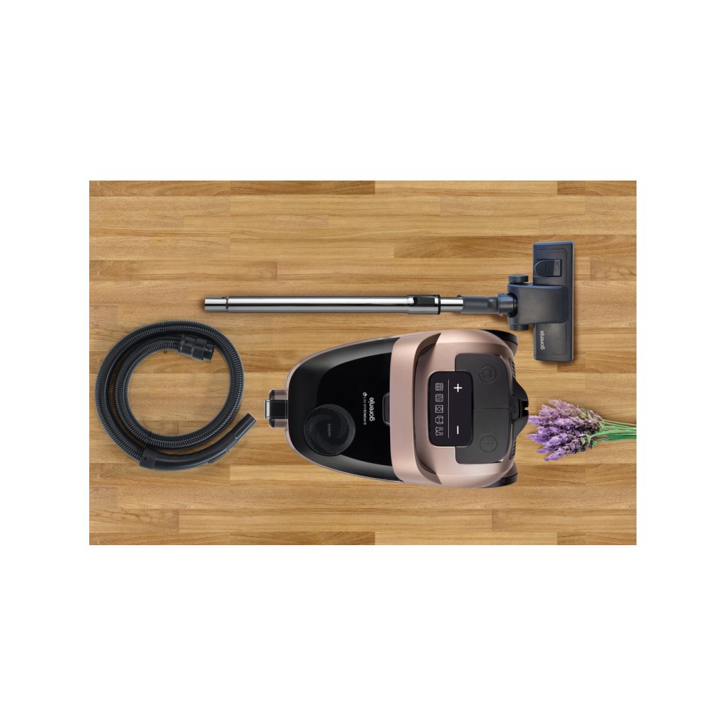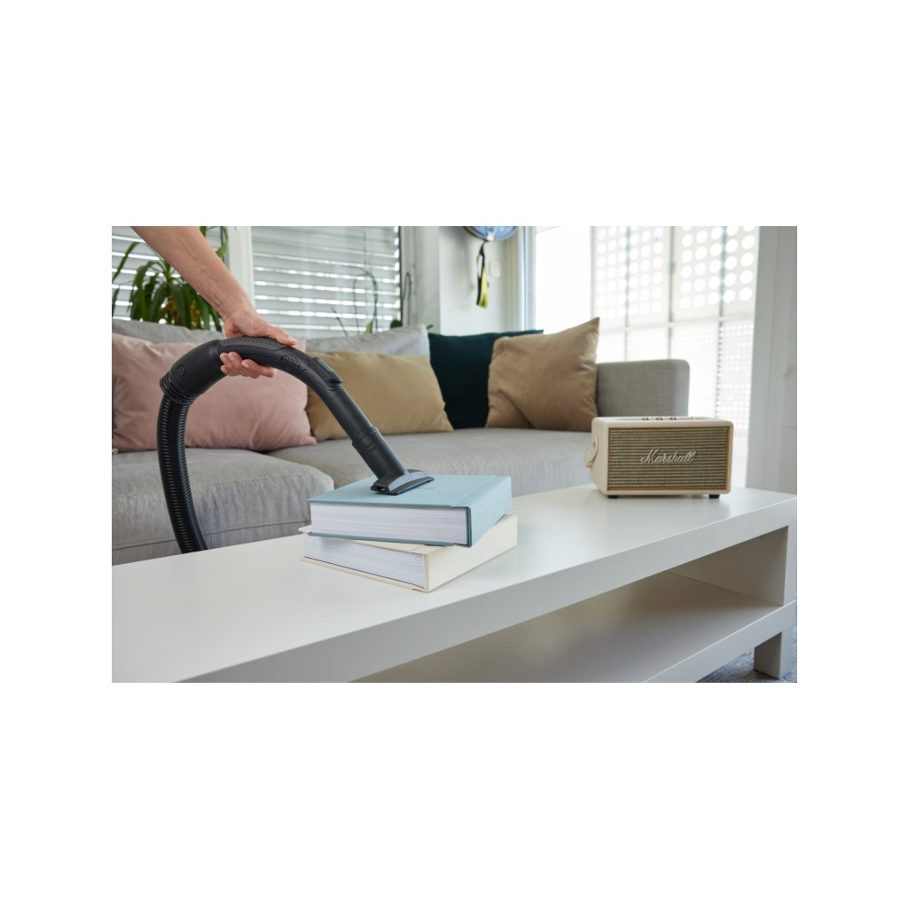 The outlet HEPA filter eliminates over 99% of particles from the air, including pollen and mite excrement, which is essential for those suffering from asthma or allergies. There is also a second HEPA filter on the dust container providing motor protection and an extra effect.