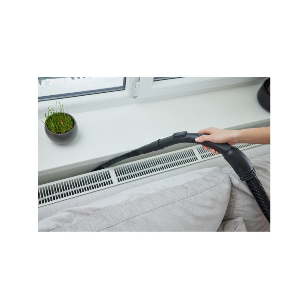 Rubberized wheels prevent damage to delicate flooring and provide solid traction. You can rely on Active Bumper to maximally protect the furniture, while ergonomically shaped rubber coated hose and handle afford optimal grip and comfortable vacuuming.