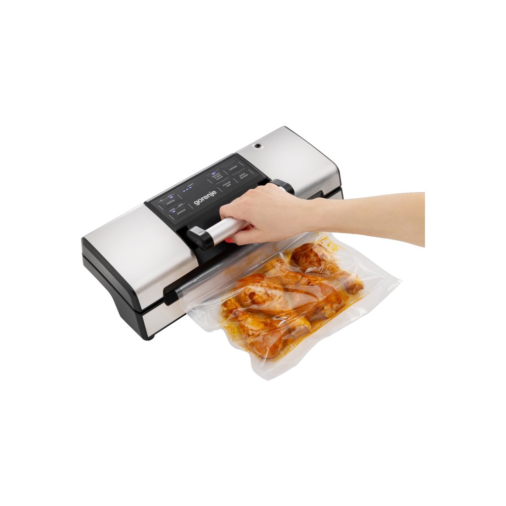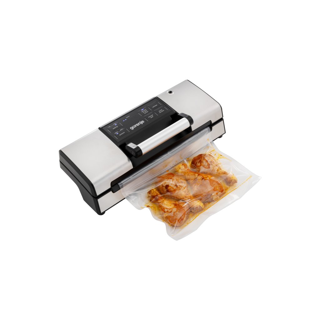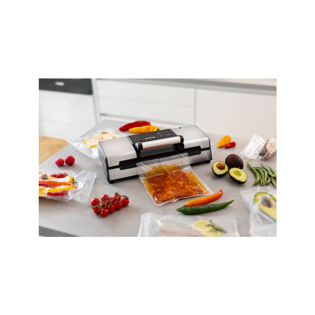 Efficient sealing of dry or wet food. Vacuum sealed bags prevent juice and aroma loss. Simply useful for quick meat marination, rapid-pickle vegetables, fast-infuse booze and perfect for sous vide cooking.