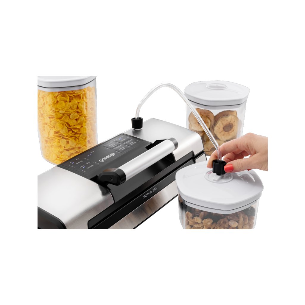 Control the pressure with choosing between normal and gentle option. The latter is designed for crisp and delicate items. Pulse option offers precise control so foods don‘t get crushed. You can also just heat seal the bag or use the provided hose attachment to vacuum in jars or canisters.