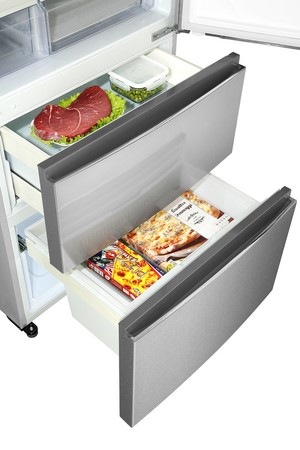 Výrobce dbal na maximální bezpečnost: proto jsou zásuvky oddělené vrstvou bezpečnostního skla a k dispozici je také exkluzivní systém posuvných kolejniček v zásuvce Easy Access Drawer s otestovanou odolností na minimálně 50 000 otevření a zavření bez opotřebení. Součástí mrazicí části je u tohoto modelu navíc také otočný výrobník ledu.