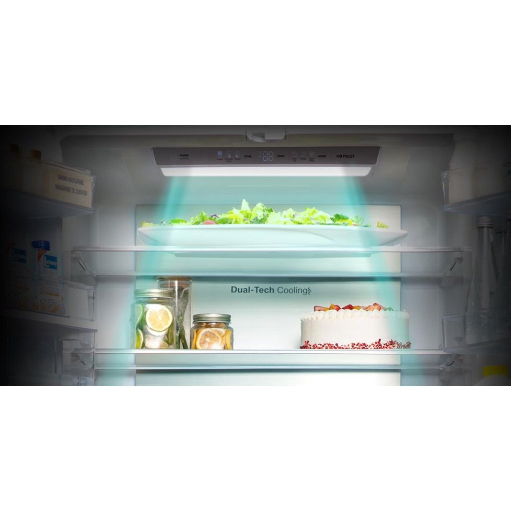 Chytrý systém Multi Air Flow využívá malé ventilační otvory na zadní stěně, které rovnoměrně rozvádějí chladný vzduch po celé chladničce. Díky této technologii se udržuje stabilní teplota ve všech rozích, takže můžete potraviny uložit na kteroukoliv polici.