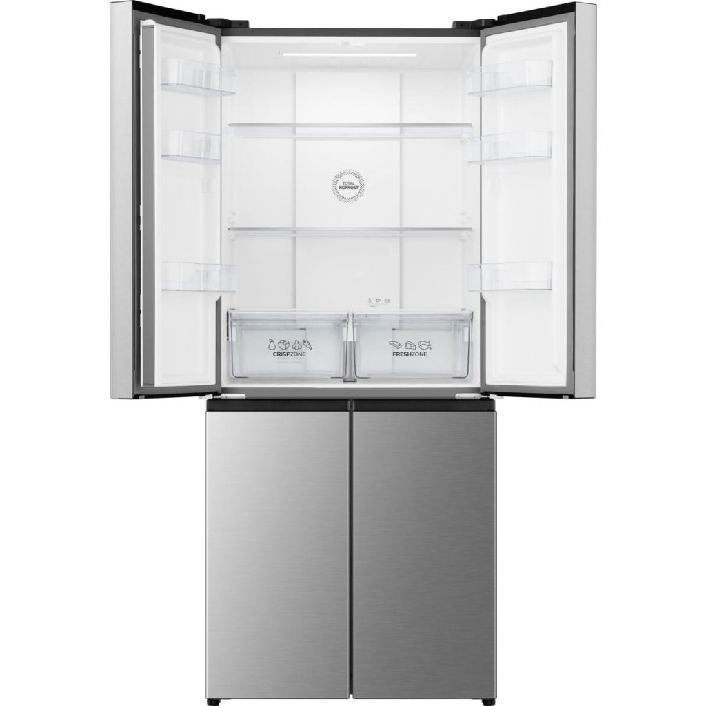 Čtyřdveřová chladnička s mrazákem vám poskytne dostatek prostoru pro potraviny pro celou rodinu. Díky širokému otevírání dveří máte vždy dokonalý přehled o všem, co je uvnitř.