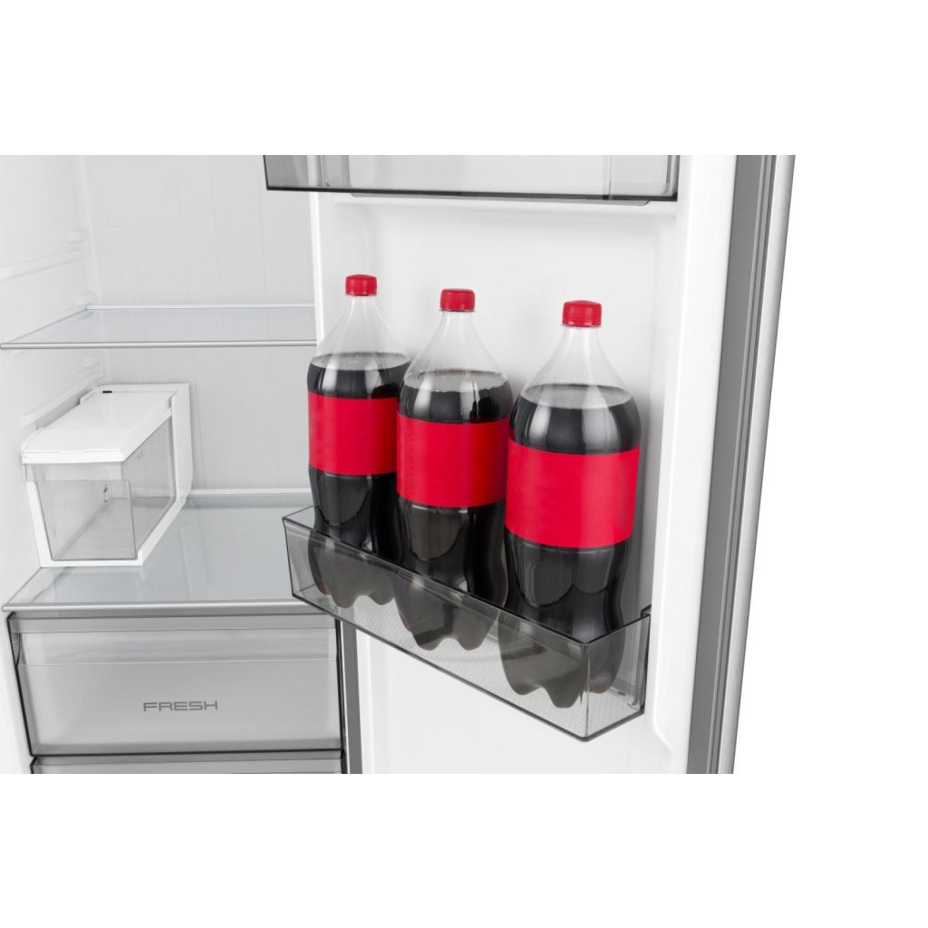 XXL přihrádka ve dveřích nabízí dostatek místa pro bezpečné uložení velkých a vysokých předmětů, například lahví, přímo ve dveřích chladničky. Uvolní tak prostor v hlavní části chladničky a zároveň umožní snadný přístup k často používaným potravinám na široké a přehledné polici.