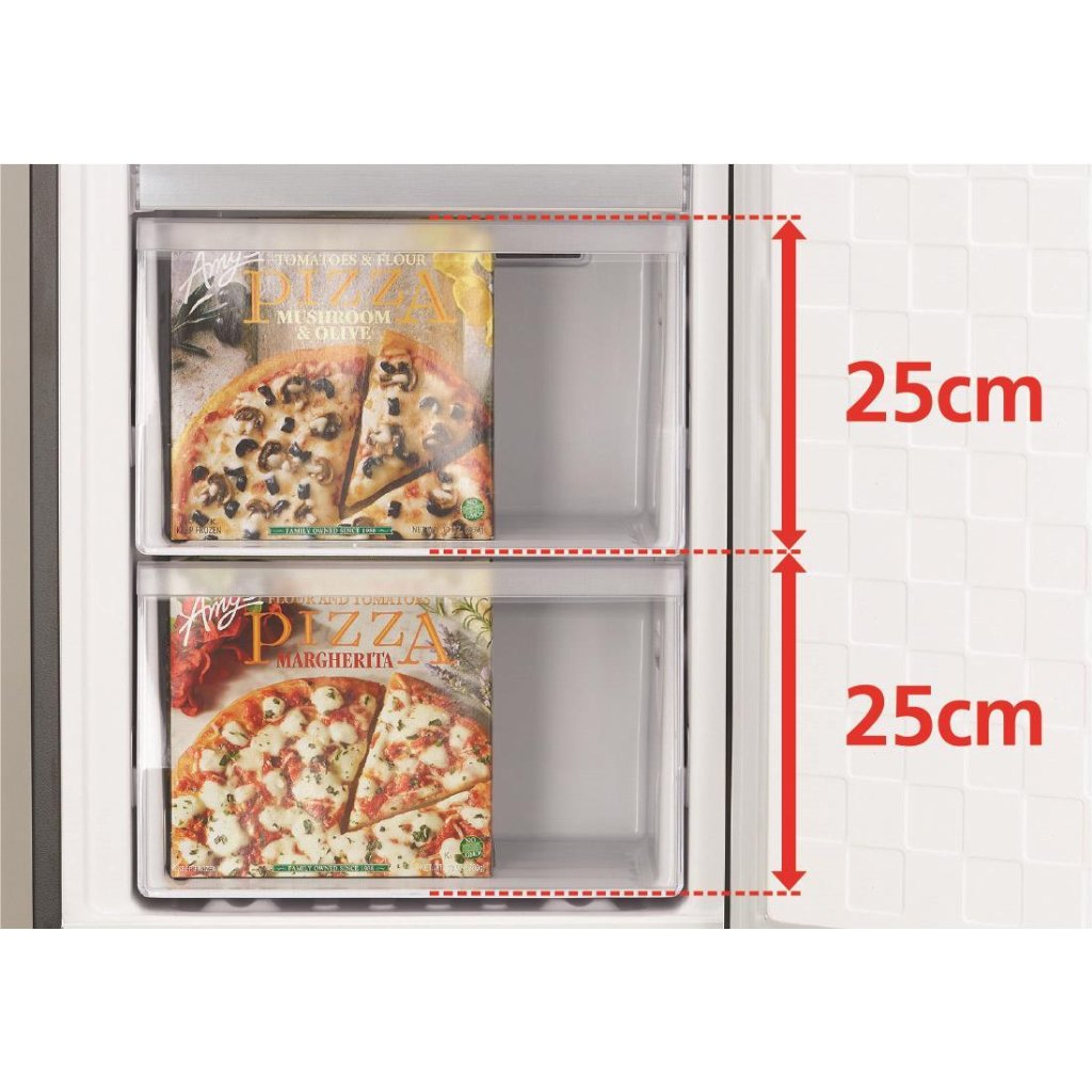 Rozměrné zásuvky pro snadné ukládání velkých potravin.Hybridní mrazení