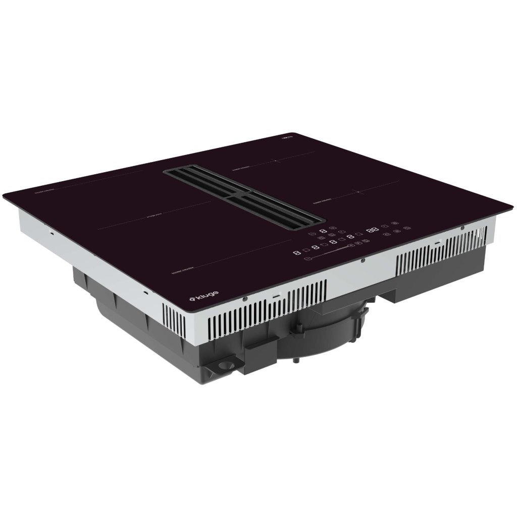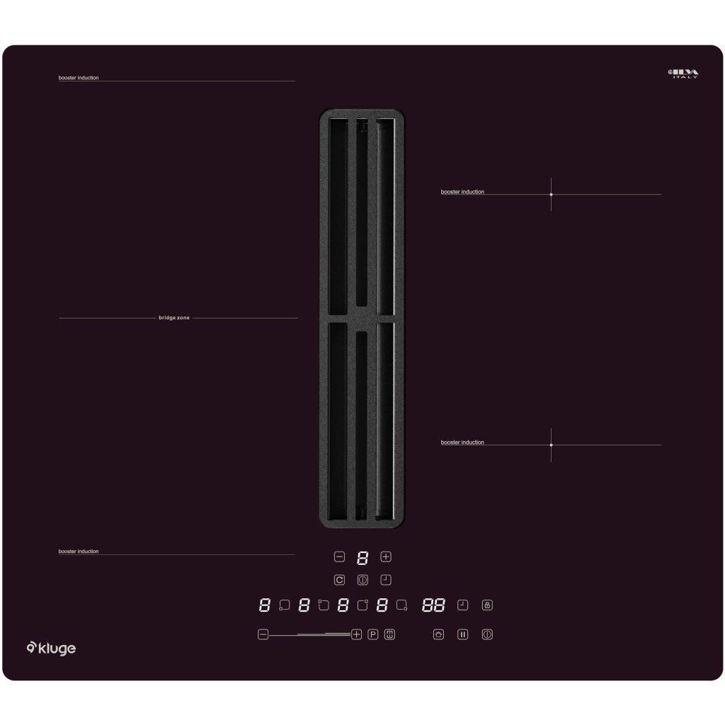 Indukční varná deska s integrovaným odsavačem par, šířka 60 cm; Povrch z černého skla s bílým LED podsvícením; Dotykové ovládání s plynulým posuvníkem výkonu Mono Slider Control; 9 stupňů nastavení výkonu varných zón včetně Boost; 4 varné zóny: přední levá 180 mm /1,8/Boost 2,3 kW, přední pravá 180 mm /1,8/Boost 2,3 kW, zadní levá 180 mm /1,2/Boost 1,5 kW a zadní pravá /1,2/Boost 1,5 kW; 1x bridge zóna; Integrovaný odsavač s BLDC motorem 170 W; Max. výkon odtahu: 600 m³/h; Hlučnost 77 dB(A); Energetická třída odsavače: A; Roční spotřeba energie odsavače: 37 kWh; 3 funkce vaření a funkce Smart pause – pozastavení výkonu všech zapnutých zón; Časovač s možností nastavení až do 99 minut; Upozornění na zbytkové teplo a dětský zámek; Detekce nádobí a automatická ochrana vypnutí; Součástí balení je flexibilní potrubí KVSD112, 200x80 mm, hliník, 0,3-2 m; Celkový příkon: 7,37 kW; Rozměry (VxŠxH): 20 x 59 x 52 cm