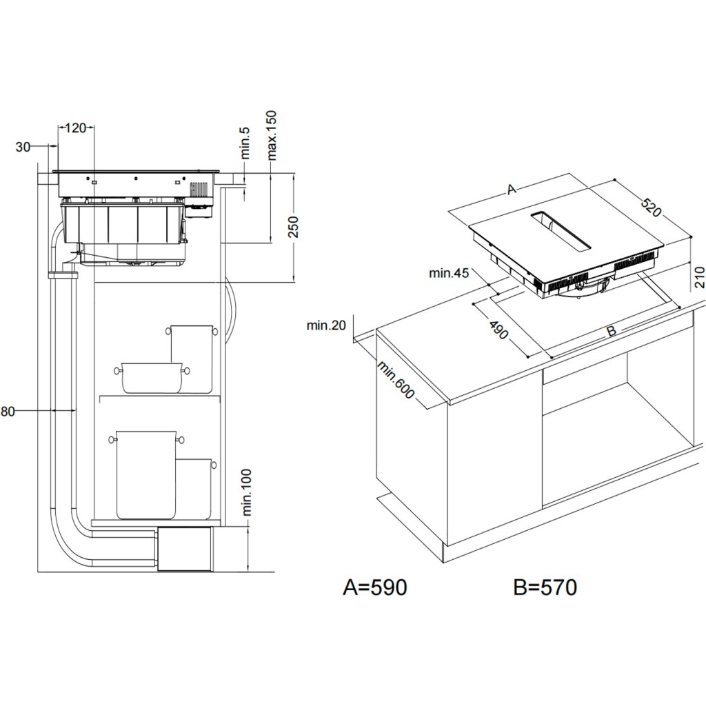 | Prostor pro instalaci (VxŠxH): | 210x570x490 mm |