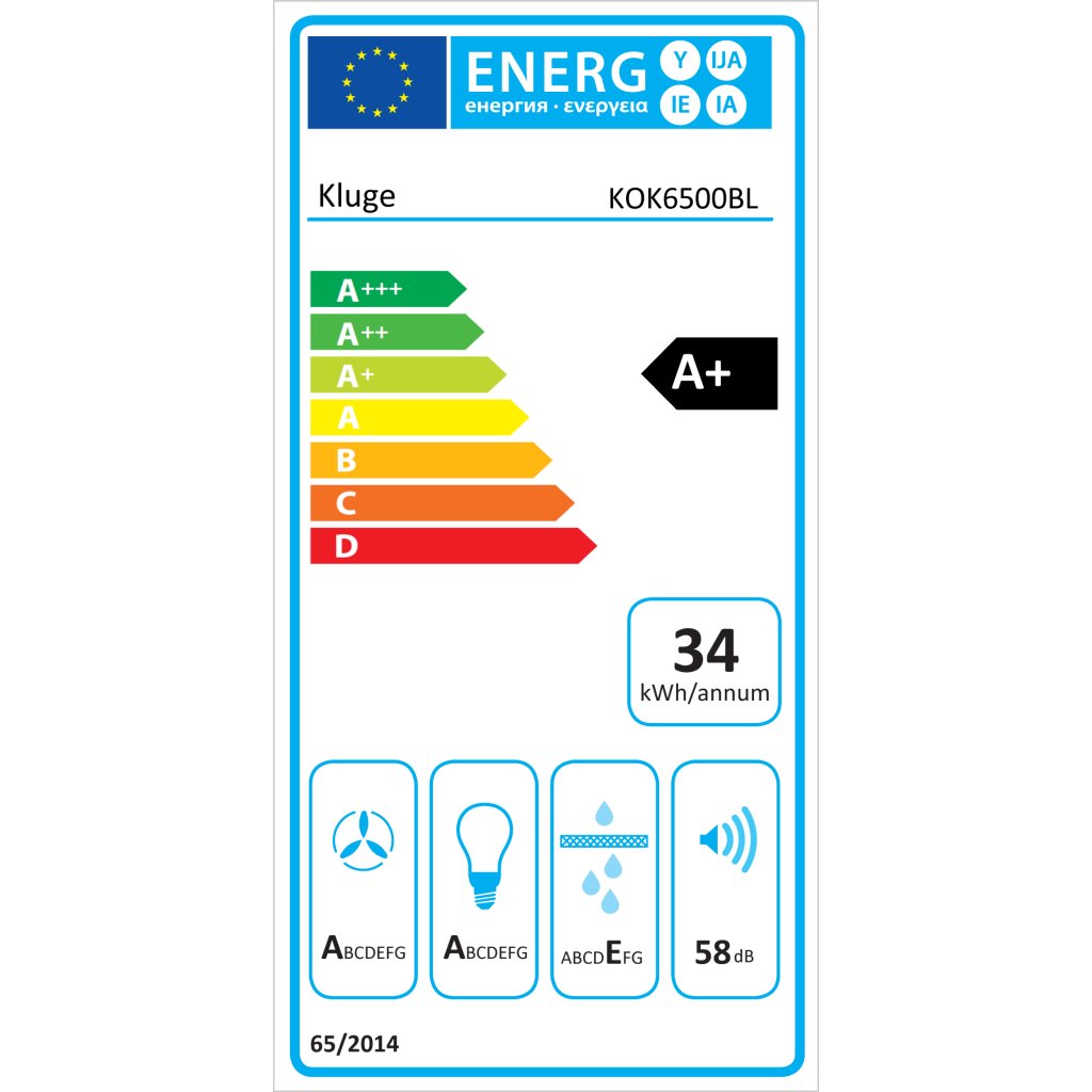 Komínový odsavač par KOK6500BL v elegantním černém matném provedení; Šířka 60 cm, výška panelu 8 cm; Ovládání gesty a dálkovým ovladačem; 3 stupně odsávání + Boost; Funkce HTH – automatické ovládání odsavače z varné desky; Funkce HTH (Hob to Hood) umožňuje propojení odsavače s varnými deskami vybavenými tímto systémem, po spárování odsavač automaticky upravuje výkon odsávání podle intenzity vaření, takže není nutné odsavač ručně nastavovat; Osvětlení 1× LED panel, 8 W s nastavením jasu a teploty světla; Výkon odtahu 170–405 m³/h, 660 m³/h v režimu BOOST; Hlučnost 39–58 dB(A), 68 dB(A) v režimu BOOST; Tukové hliníkové filtry a uhlíkový filtr pro recirkulaci (uhlíkové filtry FR-8705, 2 ks k dokoupení); Vysoká účinnost filtrace mastnot; Možnost výškového nastavení; Energetická třída A++; Roční spotřeba energie 34 kWh; Rozměry (V׊×H): min. 77,0 – max. 95,5 × 59,9 × 49,8 cm