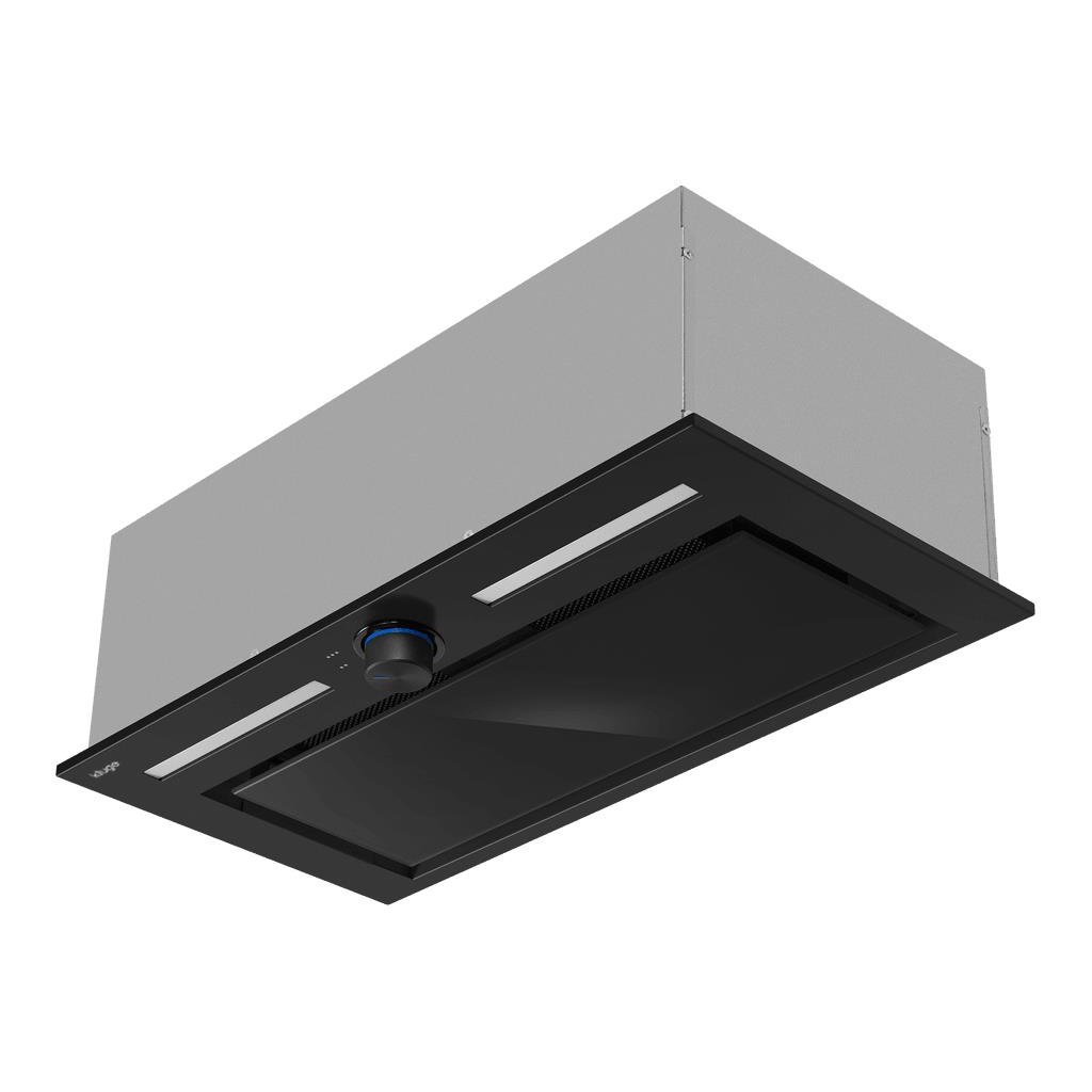 Plně vestavný odsavač par v elegantním provedení z černého kovu a černého skla; Šířka 60 cm; Ovládání mechanické pomocí otočného voliče; 4 stupně intenzity odsávání; Osvětlení 2× LED pásek (7 W); Výkon odtahu 165–320 m³/h; Hlučnost 52–65 dB(A); Tukový hliníkový filtr a volitelný uhlíkový filtr pro recirkulaci FR-0846; Vestavná instalace do skříňky s horním odtahem o průměru 15 cm; Energetická třída B; Roční spotřeba energie 34 kWh; Rozměry (V׊×H) 18,2 × 59,8 × 29,0 cm.