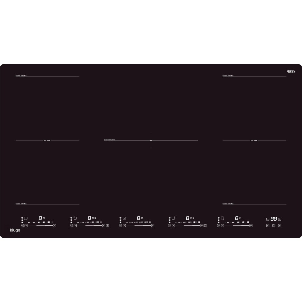 Indukční varná deska s šířkou 90 cm je navržena pro komfortní vaření i při současném použití více nádob; Povrch z černého skla s bílým LED podsvícením zajišťuje moderní vzhled a dobrou přehlednost ovládání; Dotykové ovládání Multi Slider Control umožňuje rychlé a přesné nastavení výkonu jednotlivých zón; 9 stupňů nastavení výkonu poskytuje široký rozsah regulace; 5 varných zón: 2x 19 x 19 cm 1,5/1,8/2,0 kW, 2x 19 x 19 cm 2,0/2,4/2,8 kW, střední 28 cm 2,3/3,0/3,3 kW umožňuje flexibilní přípravu pokrmů; 2x Flexi zóna rozšiřují možnosti vaření s většími nebo atypickými nádobami; Samostatná středová varná zóna o průměru 28 cm je ideální pro velké hrnce a pánve; 5 funkcí vaření zvyšuje komfort obsluhy; Funkce Smart pause umožňuje dočasné pozastavení výkonu všech aktivních zón; Funkce Boost a Power Boost zajišťují rychlé zahřátí a maximální výkon při intenzivním vaření; Časovač s možností nastavení až do 99 minut lze využít pro automatické vypnutí i jako minutku; Upozornění na zbytkové teplo a dětský zámek přispívají k bezpečnému provozu; Detekce nádobí a automatická ochrana vypnutí zvyšují efektivitu a bezpečnost používání; Celkový příkon 9,0 kW poskytuje dostatečný výkon pro náročné vaření; Rozměry (VxŠxH): 6 x 90 x 52 cm