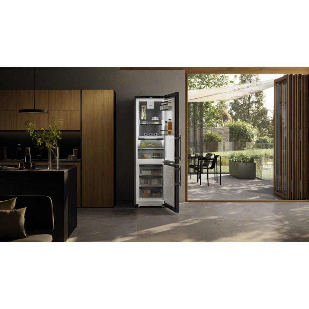Těšte se na otvírání přihrádek BioFresh: Nejen kvůli čerstvým potravinám – ale také proto, že otevírání je tak snadné a zavírání je automatické a tlumené. Zajišťují to teleskopické kolejničky, na kterých vám přihrádky hladce pojedou naproti. A protože přihrádky úplně vyjedou, budete mít nejlepší přehled o jejich obsahu.