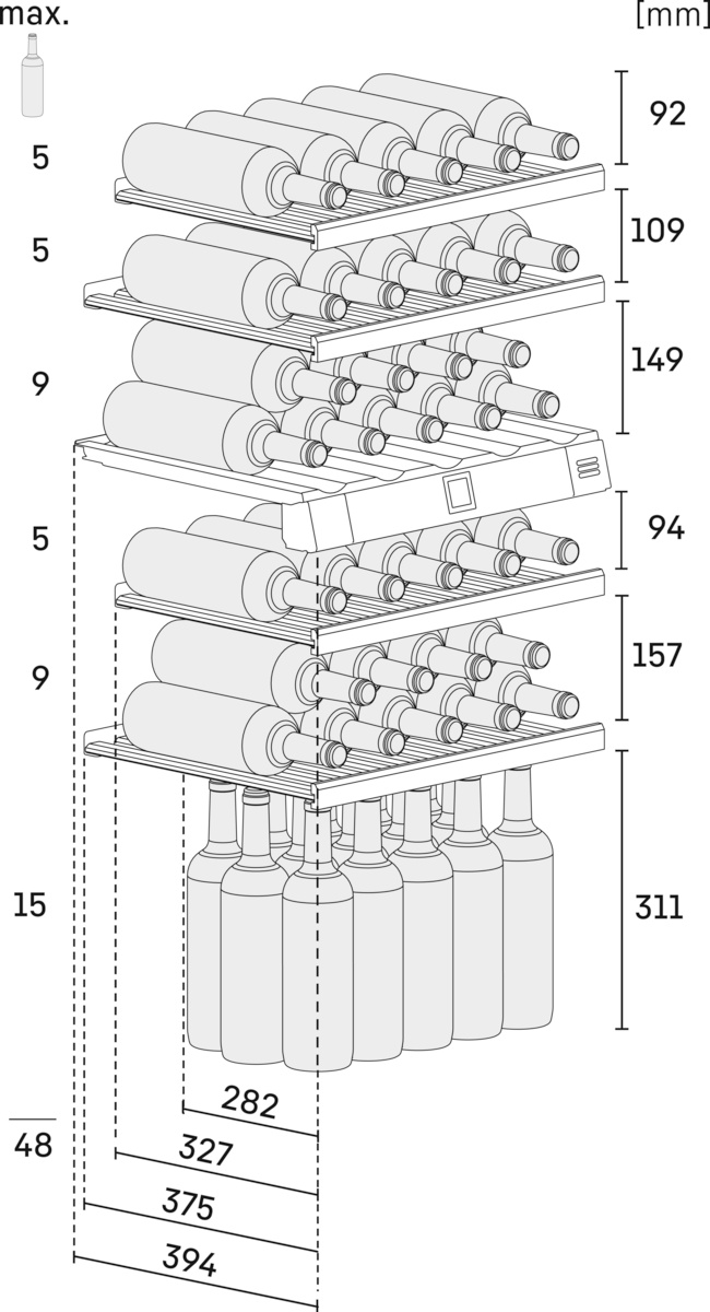 - Kapacita: 48 lahví (0,75 l Bordeaux)