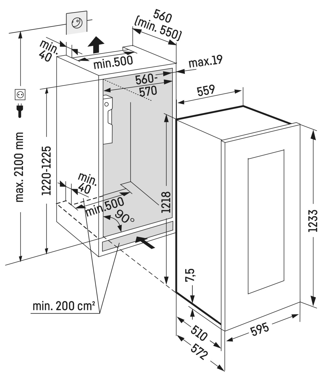 | Prostor pro instalaci (VxŠxH): | 1220-1236x560-570x550 mm |