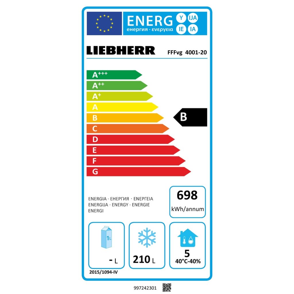 Přehled o energetické účinnosti: Z energetického štítku se dozvíte, jak hospodárné profesionální spotřebiče Liebherr jsou. Nízká spotřeba energie se navíc projeví nízkými celkovými provozními náklady.