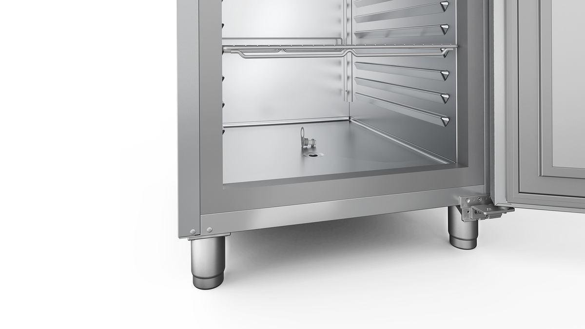 Snadné zajištění vysoké úrovně hygieny: Drenážní odvody začleněné do dna spotřebičů Liebherr pro stravovací odvětví umožňují pohodlné čištění v malých prostorech. Voda jednoduše odteče a spotřebič bude rychle znovu čistý.
