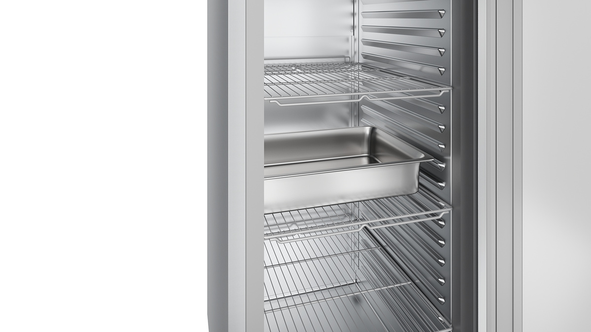 Hygiena je na místech, kde se skladují potraviny, naprosto zásadní. Hluboce tažené vnitřní obložení Gastronorm 2/1 z nerezové oceli je s ohledem na to vyrobené z hygienické nerezové oceli a neobsahuje funkční díly složité na čištění. Boční panely vnějšího pláště z nerezové oceli beze spár s izolační vrstvou se velmi snadno čistí. Chladničky a mrazničky z nerezové oceli GN 2/1 jsou odolné proti postřiku uvnitř i zvnějšku, v souladu s krytím IPX5.