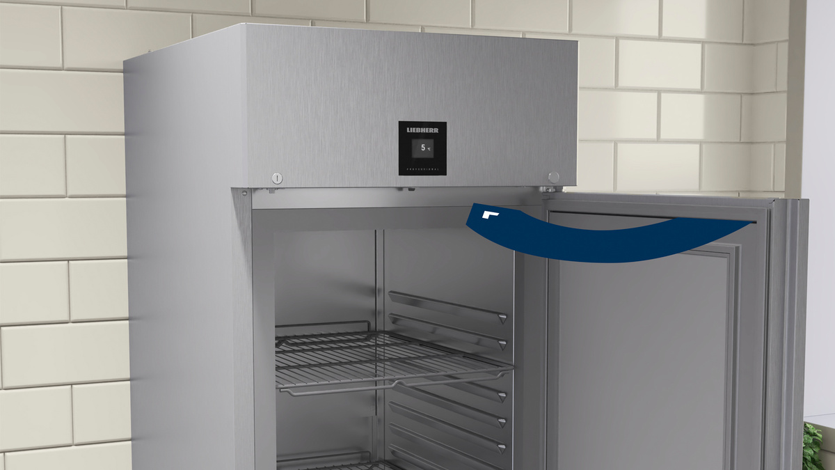 Profesionální spotřebiče Liebherr jsou z výroby osazeny pravým dveřním závěsem. S minimem úsilí a bez jakýchkoliv dalších dílů však můžete dveřní závěs přemístit doleva. Tímto máte zajištěnu naprostou svobodu ohledně výběru místa instalace.