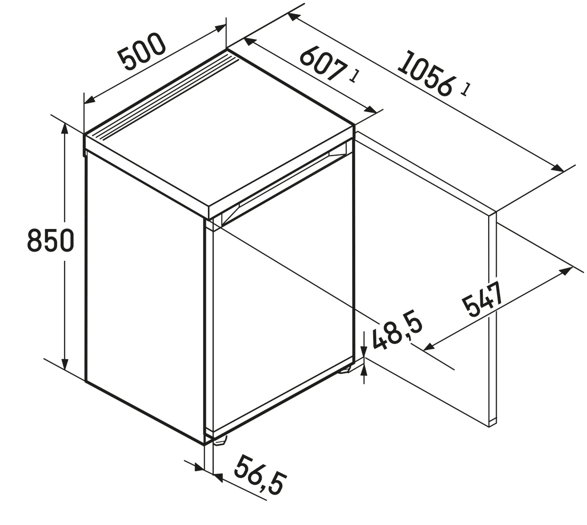 - Hloubka: 607 mm