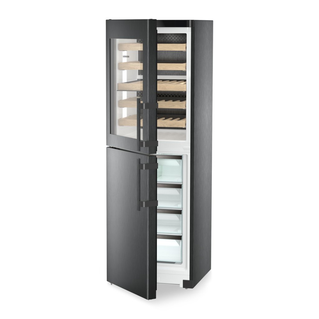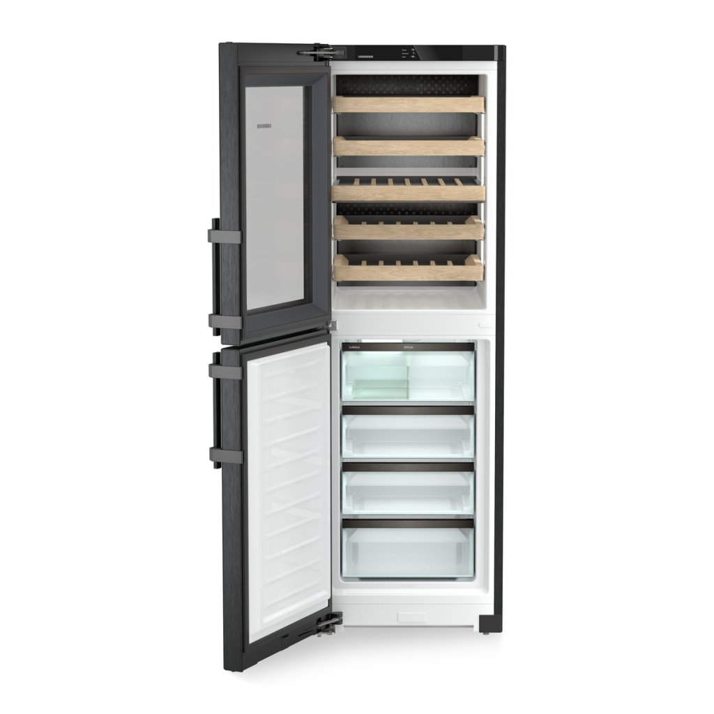 Liebherr SWNbsd 529i Peak je moderní volně stojící kombinovaná lednice z prémiové řady Peak, která kombinuje pokročilé technologie s elegantním černým designem. S celkovým objemem 303 litrů poskytuje dostatek prostoru pro potraviny i nápoje, a to včetně speciálního oddílu pro víno.