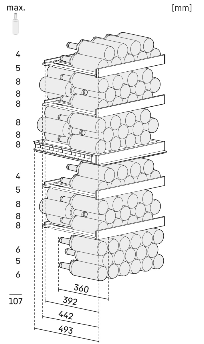 - Kapacita: 107 lahví (0,75 l Bordeaux)