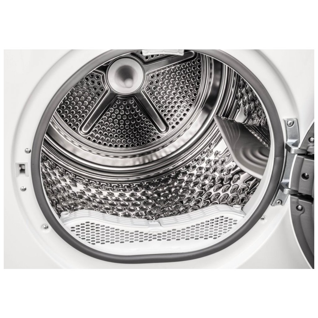 Nerezový buben s osvětlením pojme až 8 kilogramů prádla najednou. Díky vnitřnímu osvětlení si můžete posvítit na vysušené prádlo a nehrozí zapomenutá ponožka nebo jiný kus prádla.