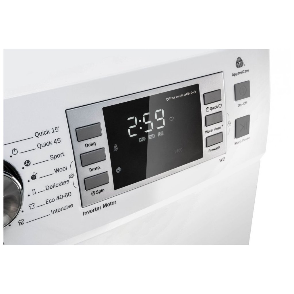 Výhodou je nízká provozní hlučnost, dokonce můžete prát i v noci, aniž by to rušilo něčí spánek. Pračka je vybavena BLDC invertorovým motorem, který se vyznačuje svou odolností a úsporností (23% úspora spotřeby el. energie na prací cyklus), ale i tichostí (více jak o 11% oproti uhlíkovým motorům), a to díky omezení vibrací a hluku. Navíc má motor mimořádně dlouhou životnost, 10 let a více. Díky kontrolnímu systému nevyváženosti pračka rovnoměrně a opakovaně rozloží prádlo uvnitř pračky. Tato funkce zajišťuje, že nehrozí nerovnoměrně rozložené prádlo, což běžně způsobuje hlučné klepání pračky při odstředění a navíc není možné dosáhnout maximálních otáček odstředění.