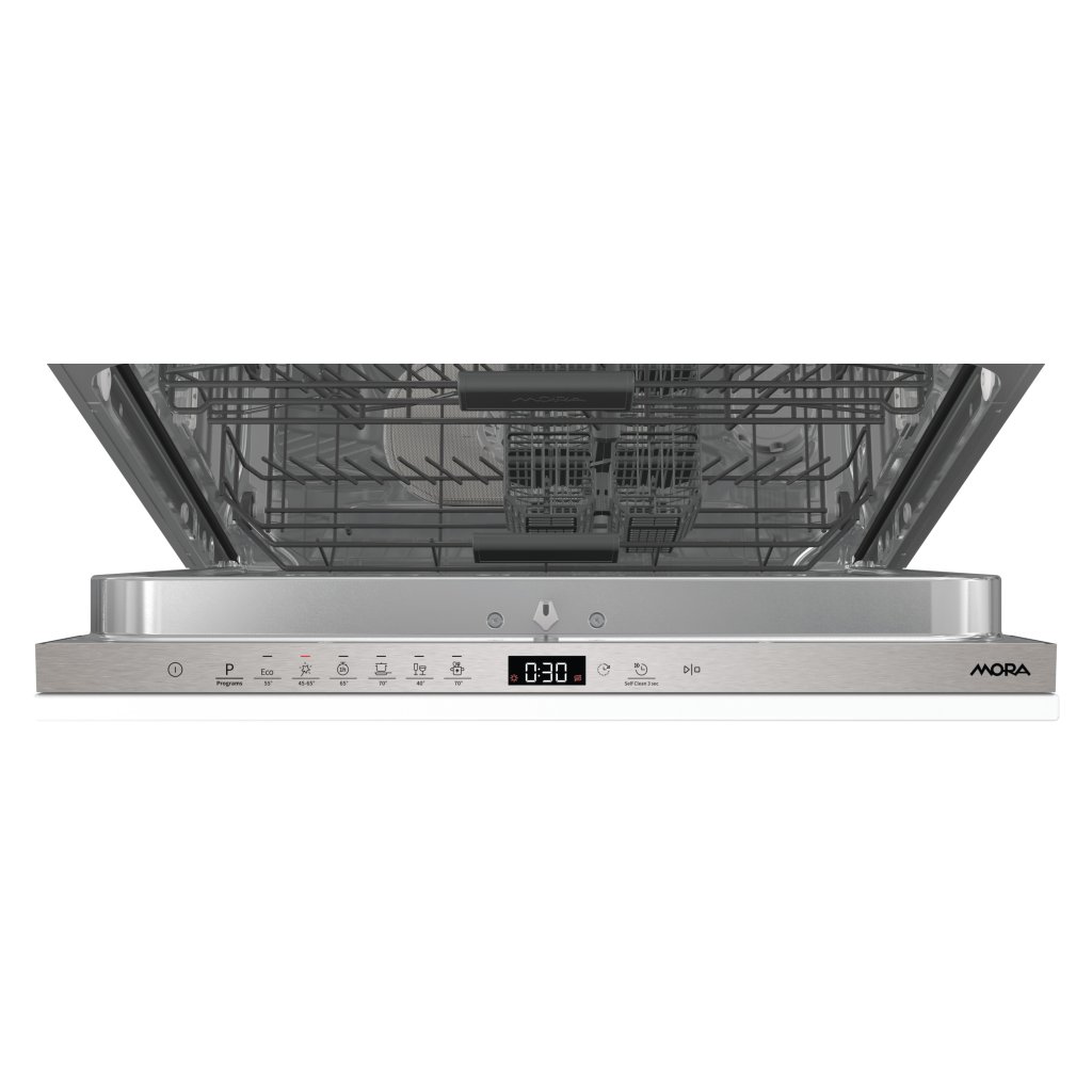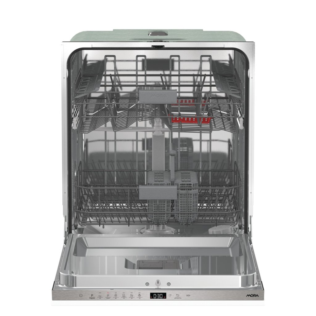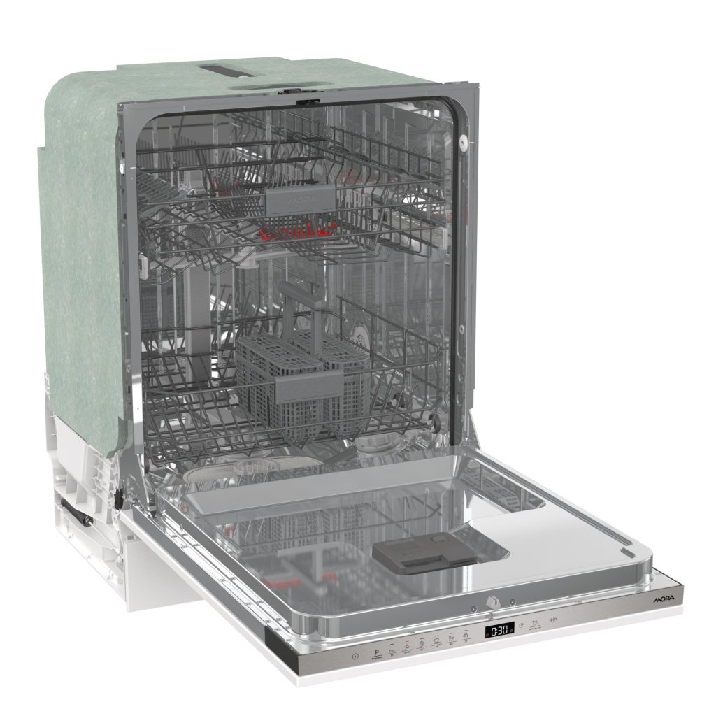 Vestavná plně integrovaná myčka MORA IM 643C3 v úsporné energetické třídě C je vhodná i do větších rodin, jelikož je do ní možné umístit až 14 jídelních sad najednou. Je vybavená dvěma koši a příborovým košíkem. Skrytý ovládací panel je opatřen dotykovým ovládáním s displejem a mnoha praktickými funkcemi, jako je například RychléMytí, které umožňuje zkrátit délku vybraných programů. Zvolíte-li funkci SušeníPlus, po ukončení programu se automaticky pootevřou dvířka, aby tak unikla pára a následný sušicí cyklus byl efektivnější a energeticky úsporný. Energii pomáhá šetřit i možnost připojení přímo na teplou vodu pomocí speciální hadice, odolávající vysokým teplotám. Samozřejmostí je úsporný ECO Program nebo AUTO Program, který sám zvolí optimální parametry mytí. Praktický je i odložený start až o 24 hodin. Myčka má navíc praktický samočistící filtr, a tak automaticky odstraní zbytky mastnoty a jídla ve filtru a zamezí nesprávnému chodu spotřebiče. Má také automatický program pro čištění celého vnitřku myčky včetně ramen a trysek. Se systémem AquaStop se nemusíte obávat nemilého překvapení v podobě vytopení.