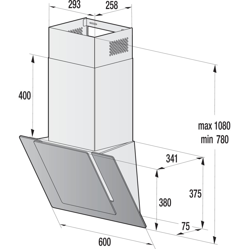 Komínový odsavač par, Barva: Černá, Energetická třída: C, Šířka: 60 cm, Výkon odsávání: 273 m3/h, Průměr odtahu: 150 mm, Směr odtahu: Horní, Možnost recirkulace i odtahu ven