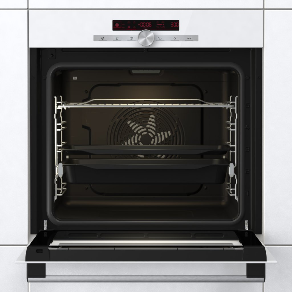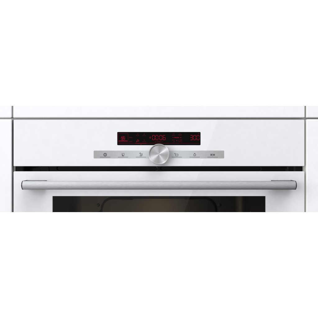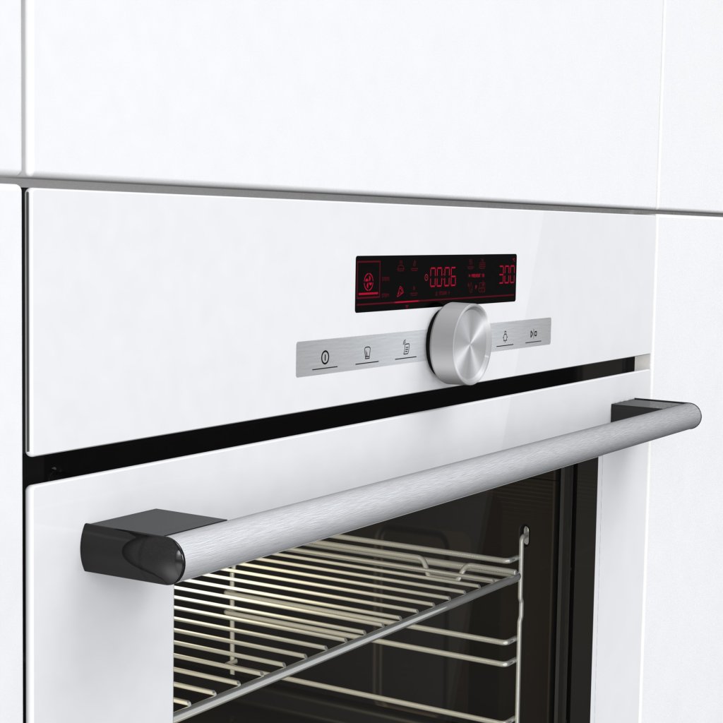Tato elektrická trouba v elegantním provedení bílého skla vám kromě tradičního pečení otevře dveře k dalším moderním tepelným úpravám pokrmu. Disponuje funkcí páry, kterou ocení především příznivci zdravé výživy. Připravíte s ní jídla rychle a šetrně, takže si zachovají maximum vitamínů a stopových prvků. Navíc vás překvapí výtečná chuť a přirozená konzistence výsledných jídel. Dále je trouba vybavená 22 automatickými pečicími programy, které jsou navržené přesně podle potřeb konkrétních jídel. Vyberte jenom typ jídla a jeho hmotnost, trouba zvolí správnou teplotu, topná tělesa a nastaví čas přípravy. Vykouzlíte například výbornou pizzu jako z italské restaurace (program Pizza 300 °C), pomalu upečete pečínku, a efektivně rozmrazíte hotové porce jídla. Pokud si rádi pochutnáváte na hranolkách nebo kuřecích nugetách, ale nedopřáváte si je tak často kvůli vysoké kalorické hodnotě, můžete také zkusit program pro horkovzdušné fritování bez tuku. Klenutý vnitřní prostor trouby je inspirovaný tradičním tvarem kamenné pece. Chytře rozmístěná topná tělesa a extra velký objem 77 l zaručují dokonale propečené a křupavé jídlo ze všech stran. Zaujme vás jistě také variabilním rozpětím teploty od 30 do 300 °C. Teleskopický výsuv zabezpečí snadnější manipulaci s nádobím, zatímco tlumené zavírání a otevírání dvířek přinese komfort při každodenním provozu. Díky dvojitému osvětlení získáte perfektní přehled, aniž byste museli troubu otevírat. Speciální dvířka CoolDoor jsou vyrobená z trojitého skla, takže zůstávají chladná, a tedy bezpečná, i během pečení. Perfektní vyčištění párou zajistí funkce ECO CLEAN, díky které odstraníte i větší nečistoty bez nutnosti použít čisticí prostředek. Trouba spadá do ekologické třídy A+.